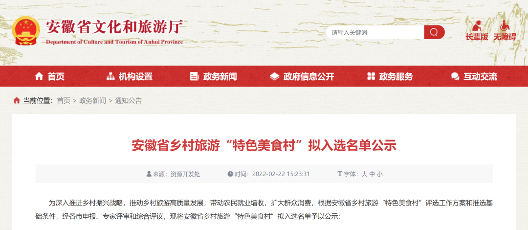 為深入推進(jìn)鄉(xiāng)村振興戰(zhàn)略,推動(dòng)鄉(xiāng)村旅游高質(zhì)量發(fā)展,帶動(dòng)農(nóng)民就業(yè)增收,擴(kuò)大群眾消費(fèi),根據(jù)安徽省鄉(xiāng)村旅游“特色美食村”評(píng)選工作方案和推選基礎(chǔ)條件,經(jīng)各市申報(bào)、專家評(píng)審和綜合評(píng)議,現(xiàn)將安徽省鄉(xiāng)村旅游“特色美食村”擬入選名單予以公示:
