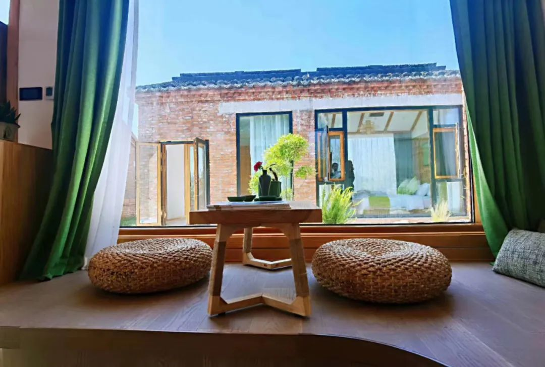 小院內(nèi)的房間環(huán)境優(yōu)美,綠色的抹茶,綠色的茶園,綠色主題,相映成趣,一片生機(jī)盎然。回歸自然與本我,沏茶讀書,臥聽風(fēng)雨。