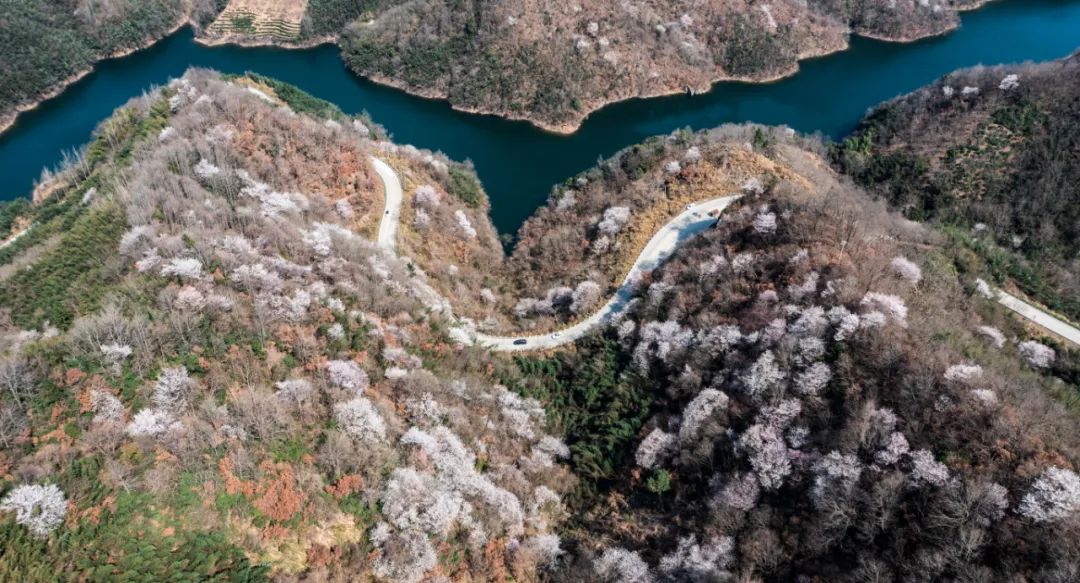 賞花路線:金寨縣城——金桃大橋——S443省道(金桃公路)沿途至龍?zhí)洞?/p>