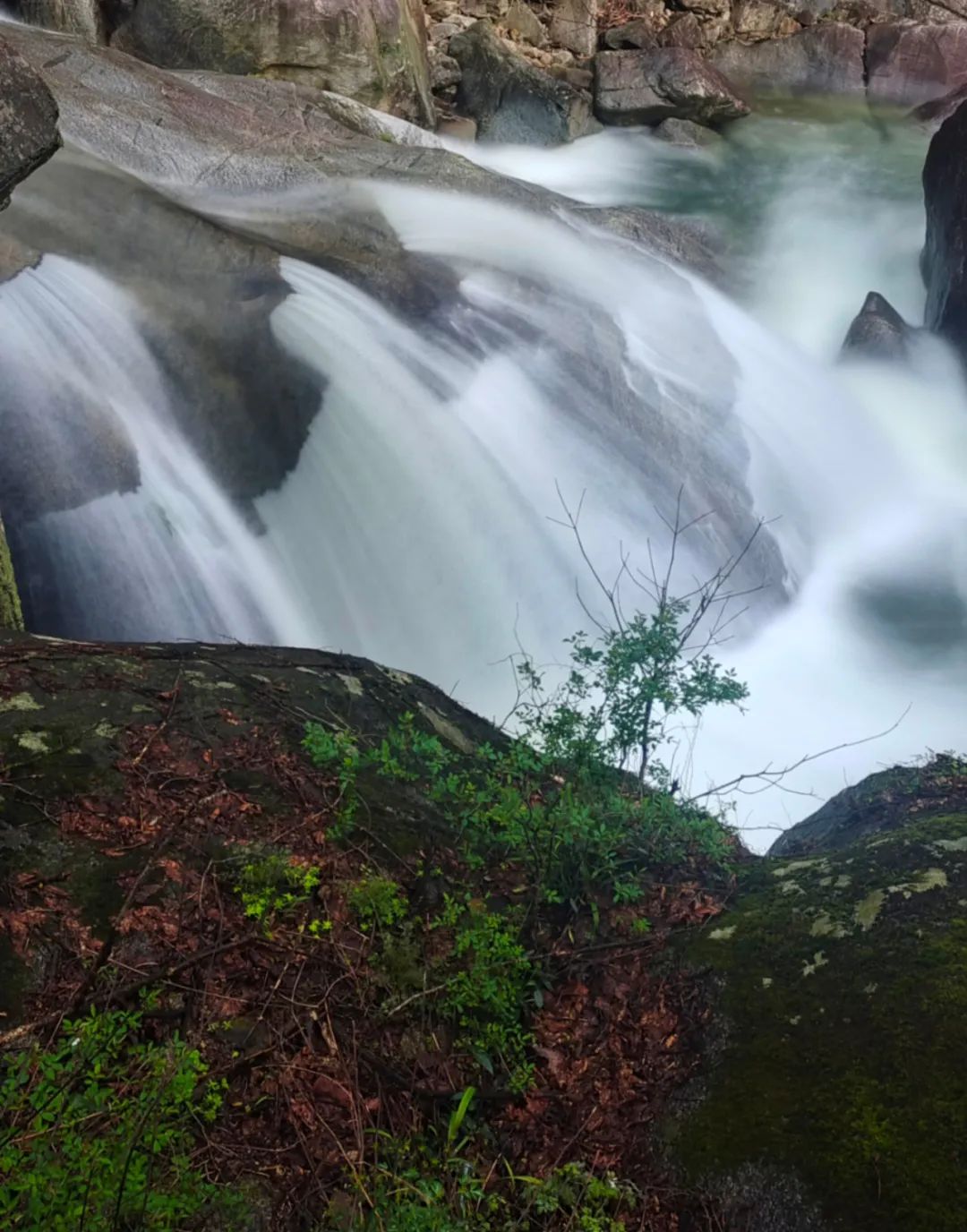 向?qū)嵝颜f,連續(xù)下雨,可能河道水量充沛,無法到達第二道瀑布,大家商量了一下,分成兩撥,我們幾個繼續(xù)前進,上行到第一道瀑布的上游后,抬眼望去,峰擠崖?lián)?,山石錯落,這灣水卻依山繞石,不急不躁徑直向前。河床變得開闊,水流鋪展開身軀,宛如一匹平滑美麗的緞面;河床狹窄時,水流收攏起手腳,依然是頑強地向前流,依然是千曲萬折,卻還是那般的矜持和溫順,還是那樣的堅韌和有序。