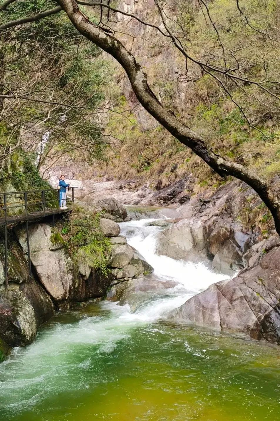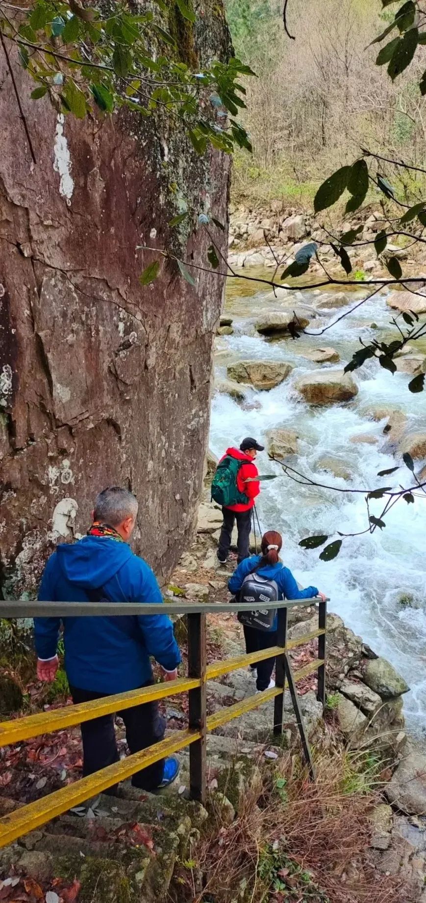 陽春三月,乍暖還寒,六安旅游推廣大使一行人來到了龍井峽,在堆谷山村部附近找了一家民宿,匆匆放下行李,便迫不及待地讓民宿老板做向?qū)?,帶我們進山來看瀑布。