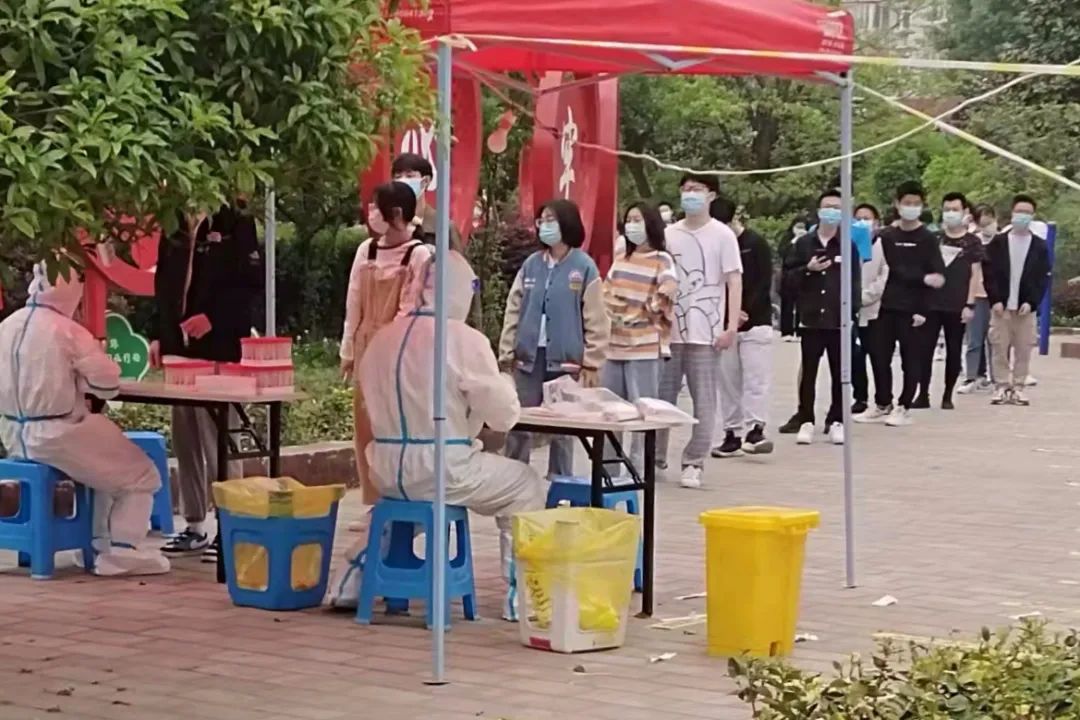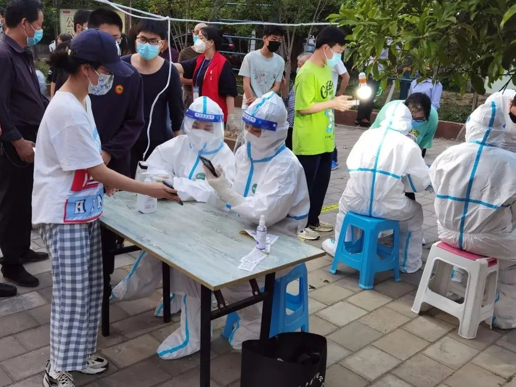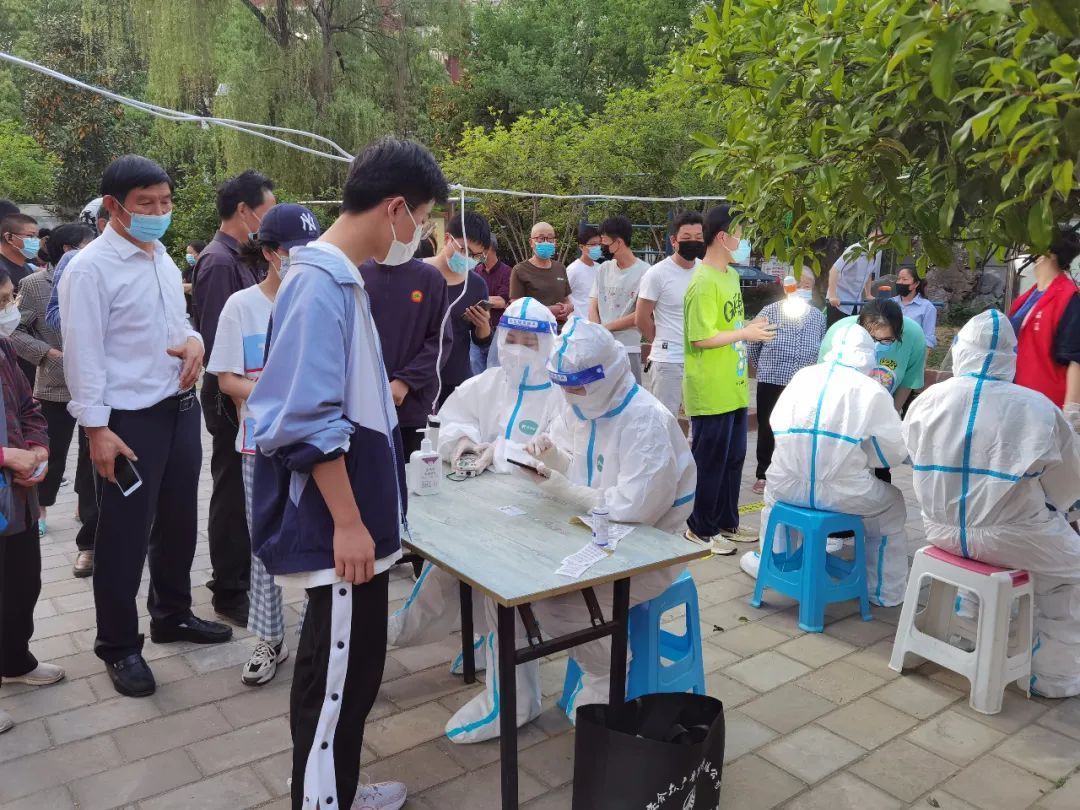 市文旅局結(jié)對共建的河濱社區(qū)第6輪核酸于當晚6點鐘開始,要求每位居民應(yīng)檢盡檢。由于該社區(qū)內(nèi)有很多皖西中學(xué)的學(xué)生,并且社區(qū)居民較多,核酸檢測排隊的時間較長。在了解到高三學(xué)生7點鐘需要上網(wǎng)課后,為了不耽誤學(xué)生們的課程進度,志愿者們隨即商定為學(xué)生們設(shè)立“綠色通道”,優(yōu)先進行檢測,并安排志愿者在小區(qū)內(nèi)用小喇叭進行宣傳,號召學(xué)生們盡快下來檢測。在志愿者們的有序引導(dǎo)下,社區(qū)里100多名高三學(xué)生以最快的速度完成了核酸檢測。