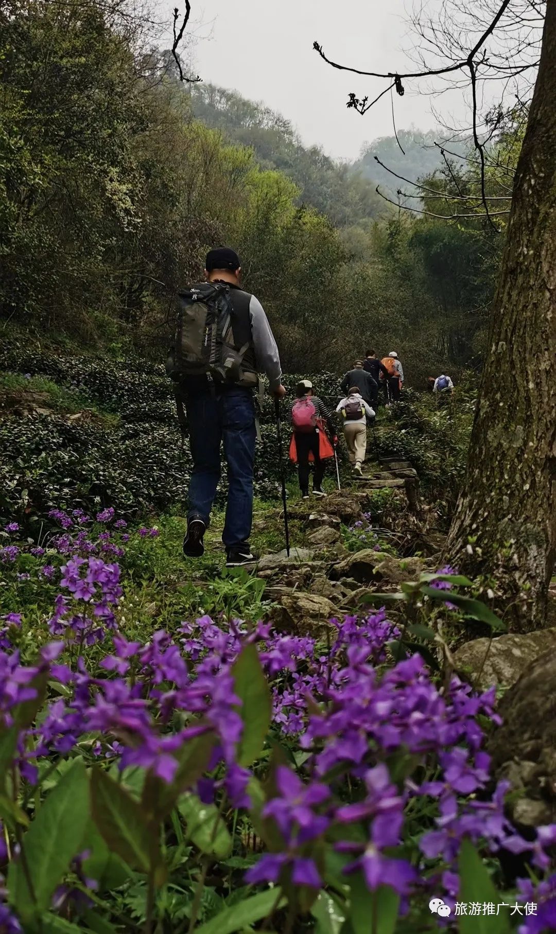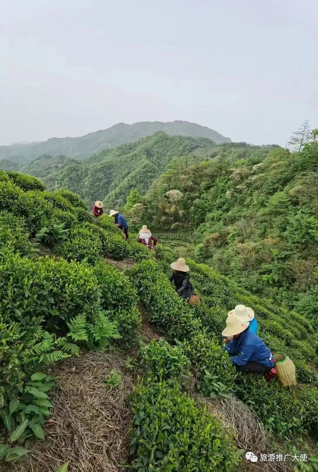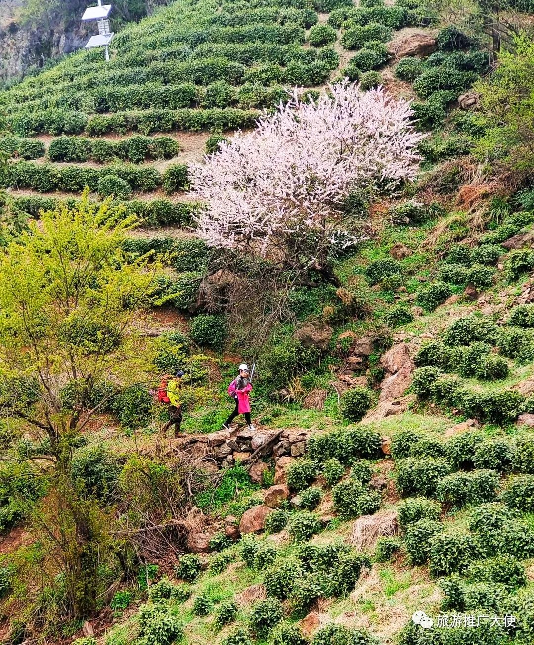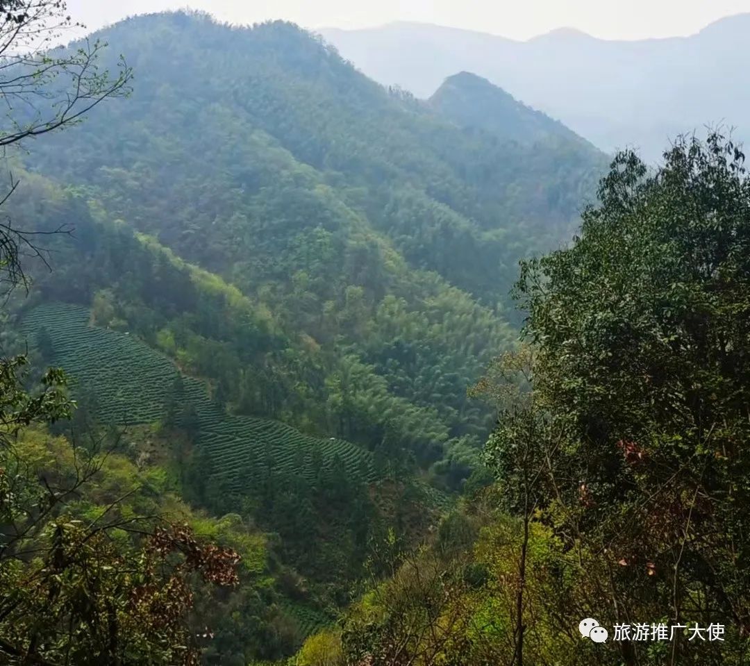 此次徒步之旅,從齊山村開始,沿著后山的山脊垂直攀爬,山路陡峭險峻,蜿蜒曲折,沿路都是茶園,當(dāng)站在蝙蝠洞放眼望去,群山高聳,溝壑綿延,山坡處處彌漫著茶葉的芬芳,蟄伏了一個冬天的幾萬畝茶園,仿佛一夜之間蘇醒。