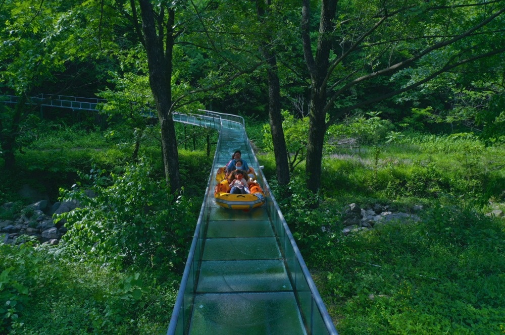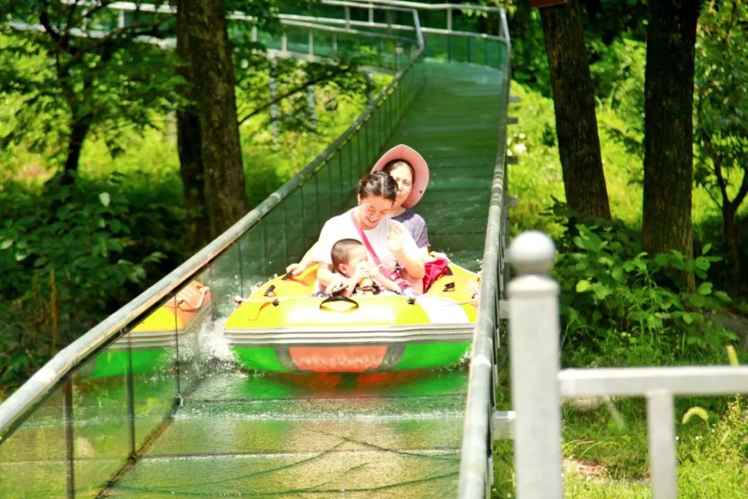 坐在光滑的玻璃滑道順勢(shì)而下,聞著林中草木的清香,聽著爽耳的風(fēng)響,在玻璃滑道中飛馳,在林海中翱翔驚險(xiǎn)刺激,暢快淋漓。