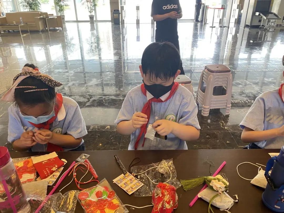 6月1日上午,豐安小學(xué)20余名同學(xué)和老師一起大手牽小手來(lái)到博物館參加活動(dòng),在講解員的帶領(lǐng)下參觀了《皖西廬劇藝術(shù)陳列》、《非物質(zhì)文化遺產(chǎn)展》等展陳,了解學(xué)習(xí)皖西地區(qū)非物質(zhì)文化遺產(chǎn)相關(guān)知識(shí)。在《社會(huì)主義核心價(jià)值觀》小課堂上,博物館的工作人員和孩子們一起誦讀社會(huì)主義核心價(jià)值觀24字訣,借助重要節(jié)慶日傳播社會(huì)主流價(jià)值的獨(dú)特優(yōu)勢(shì),引導(dǎo)孩子們認(rèn)識(shí)社會(huì)主義核心價(jià)值觀的深刻內(nèi)涵及意義。手工制作活動(dòng)“六一快樂(lè)小風(fēng)車”、知識(shí)小課堂《端午》等活動(dòng)項(xiàng)目帶給孩子們豐富的節(jié)日體驗(yàn)。最后,學(xué)生和老師、工作人員一起學(xué)習(xí)制作端午香囊,互相祈福健康快樂(lè)。