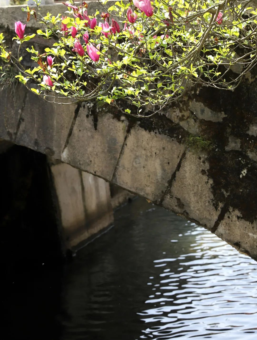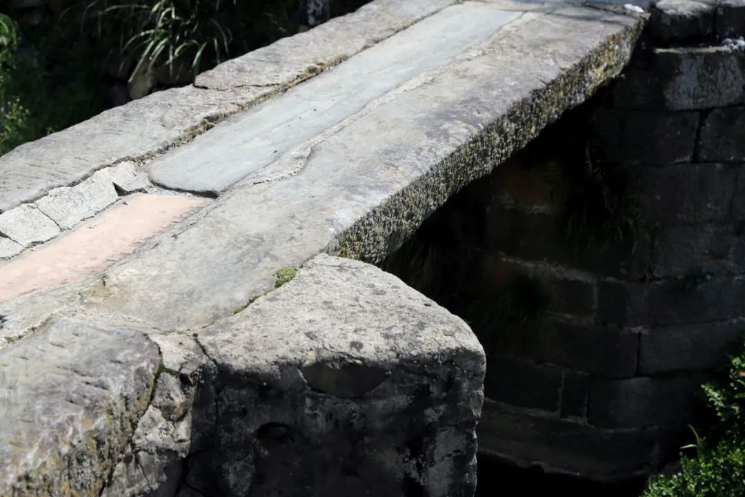 見我們圍著老橋轉,老鄉(xiāng)就微笑著過來了,捧著飯碗。老鄉(xiāng),這個橋很老了吧?是有年頭了,宋代的。宋代的?見我們懷疑,老鄉(xiāng)不說話了,敲一下飯碗,筷子指著石頭。我們無意冒犯,趕緊看石頭。整座橋都是清一色的老石頭,色澤不一,黝黑色的居多,間插著幾塊暗紅的,雕工談不上多精美,但面平棱直,刻痕非常清晰,粗糙中透著力度,每個刻痕里都藏在歲月的包漿,猶如老人的皺紋。老石條在網(wǎng)上很值錢,一小塊就是好幾百,沖的就是這種滄桑與煙火。