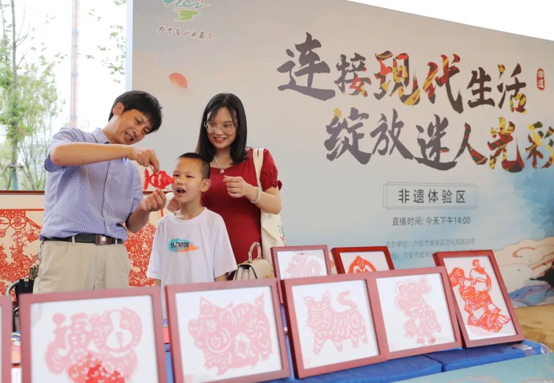 皋陶文創(chuàng)樂園非遺體驗(yàn)游主題活動(dòng)大受歡迎。金安區(qū)文旅局現(xiàn)場組織了翁墩剪紙、農(nóng)民畫、六安烙畫制作技藝、鑼鼓書、鴿鶇理窩舞、大紅袍油紙傘制作技藝、酥餃制作技藝等非遺項(xiàng)目供游客體驗(yàn);組織了六安黃大茶制作技藝、東石筍野茶制作技藝、三十鋪板鴨、張老頭粉絲制作技藝、華山銀毫茶、雙河小吊酒等非遺項(xiàng)目展示展銷?;顒?dòng)采用線上直播+線下體驗(yàn)的形式,為游客朋友們帶來了一場非遺盛宴。
