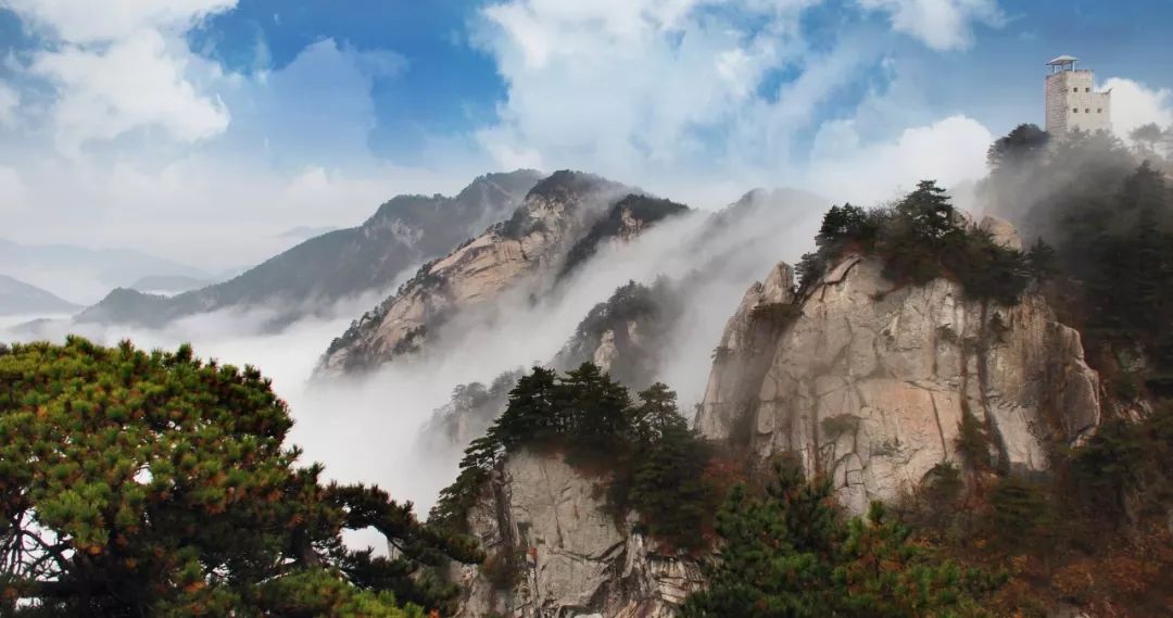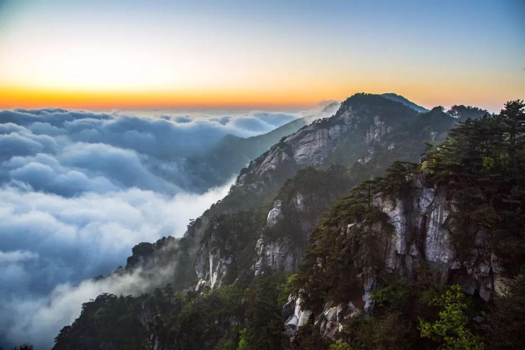 天堂寨峰林景觀,如刀劈斧削,犬牙交錯(cuò),披綠掛紅,雄偉壯觀,多姿多彩,和煦的陽(yáng)光中,出現(xiàn)了美麗的平流霧奇觀。云霧繚繞,朝霞輝映,薄薄的云霧蜿蜒飄蕩,將萬(wàn)峰林裝扮得分外妖嬈,峰林之間內(nèi)一步一景,步移景換,景景如畫(huà)。