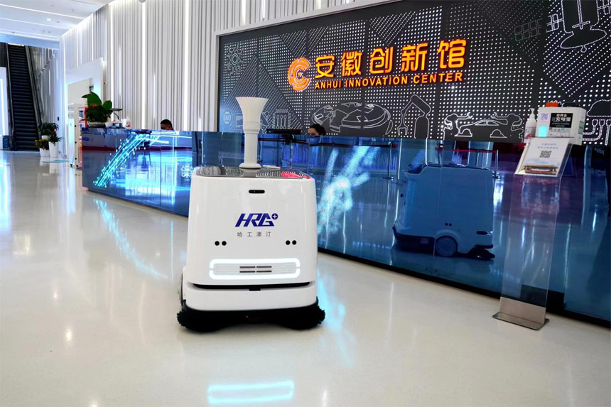 近日,一款清潔消殺機器人進駐安徽創(chuàng)新館加入“保潔”行列,助力館內疫情防控工作。這款來自哈工大機器人(合肥)國際創(chuàng)新研究院(以下簡稱“HRG合肥研究院”)的機器人不僅掃地、擦地、吸塵、消毒“一肩挑”,自主導航、智能避障、自主返樁充電等技能也是“滿格”。