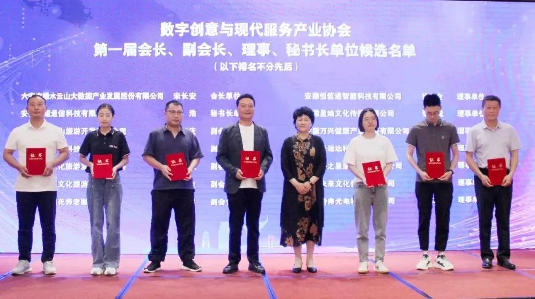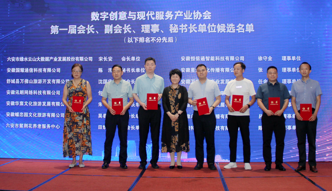 會上,魏武和新當(dāng)選的會長單位法人代表宋長安共同為六安市數(shù)字創(chuàng)意與現(xiàn)代服務(wù)產(chǎn)業(yè)協(xié)會揭牌。蔡黎麗為14家理事單位頒發(fā)了證書。