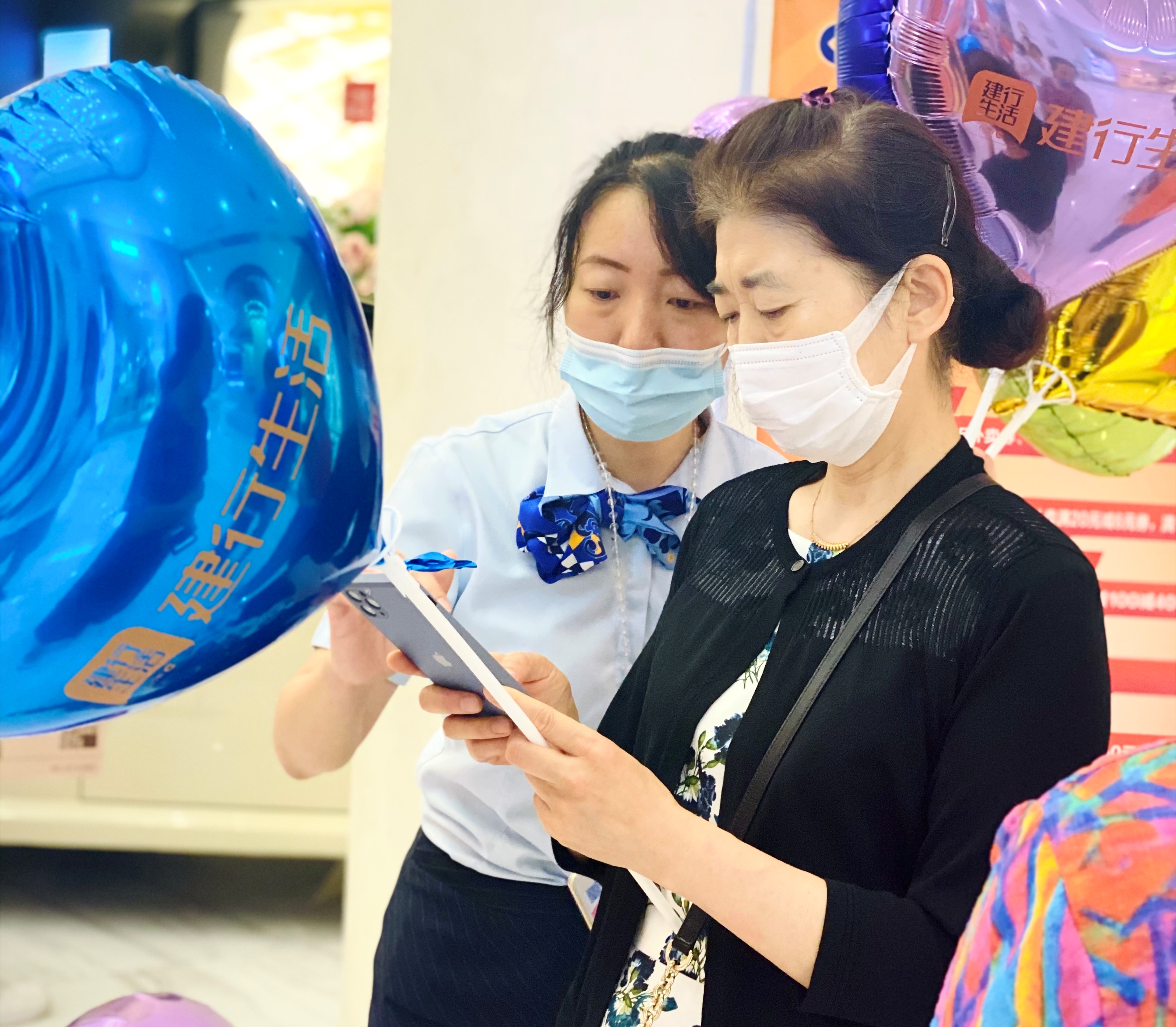 建設(shè)銀行工作人員指導(dǎo)用戶下載“建行生活”APP
