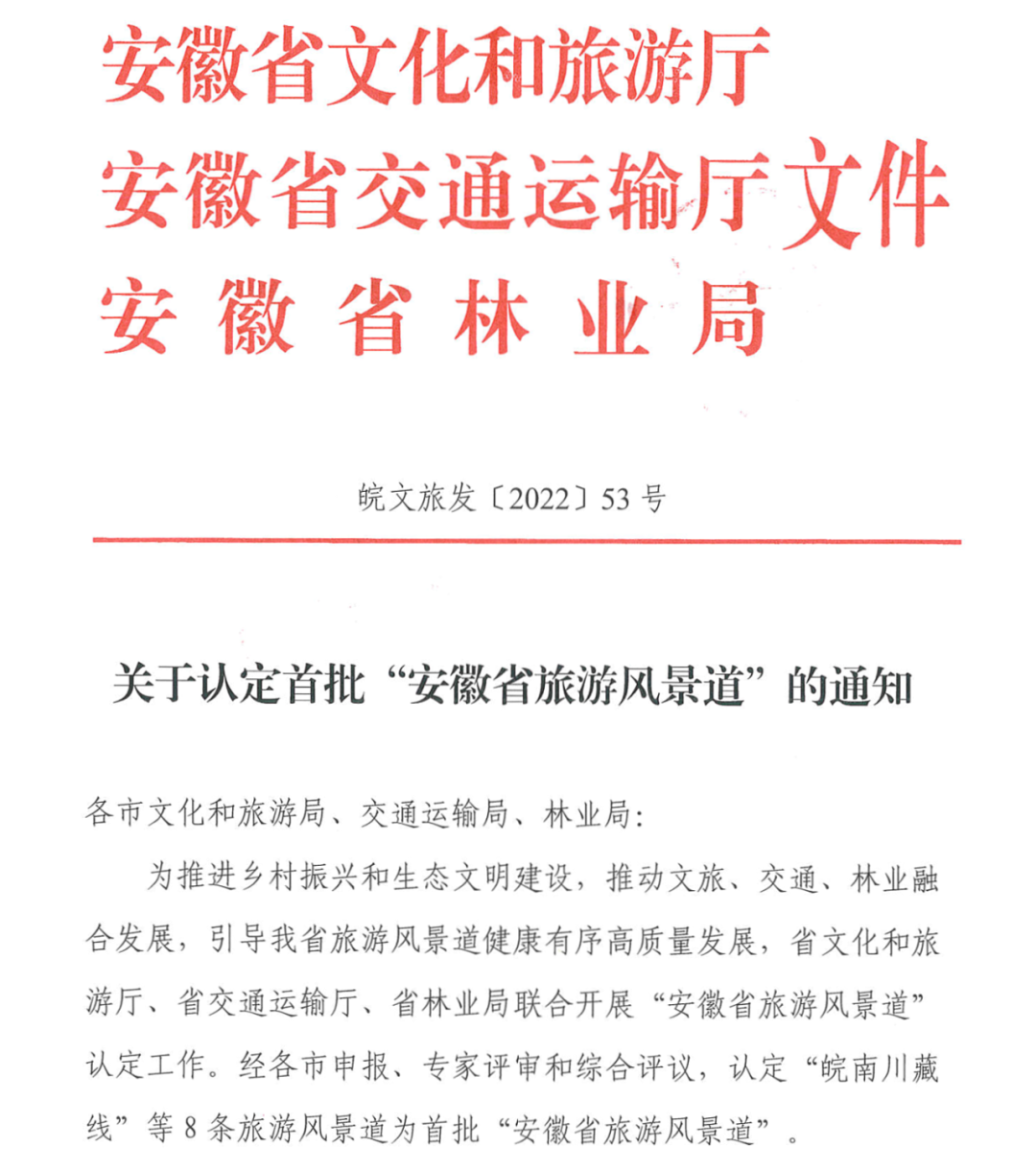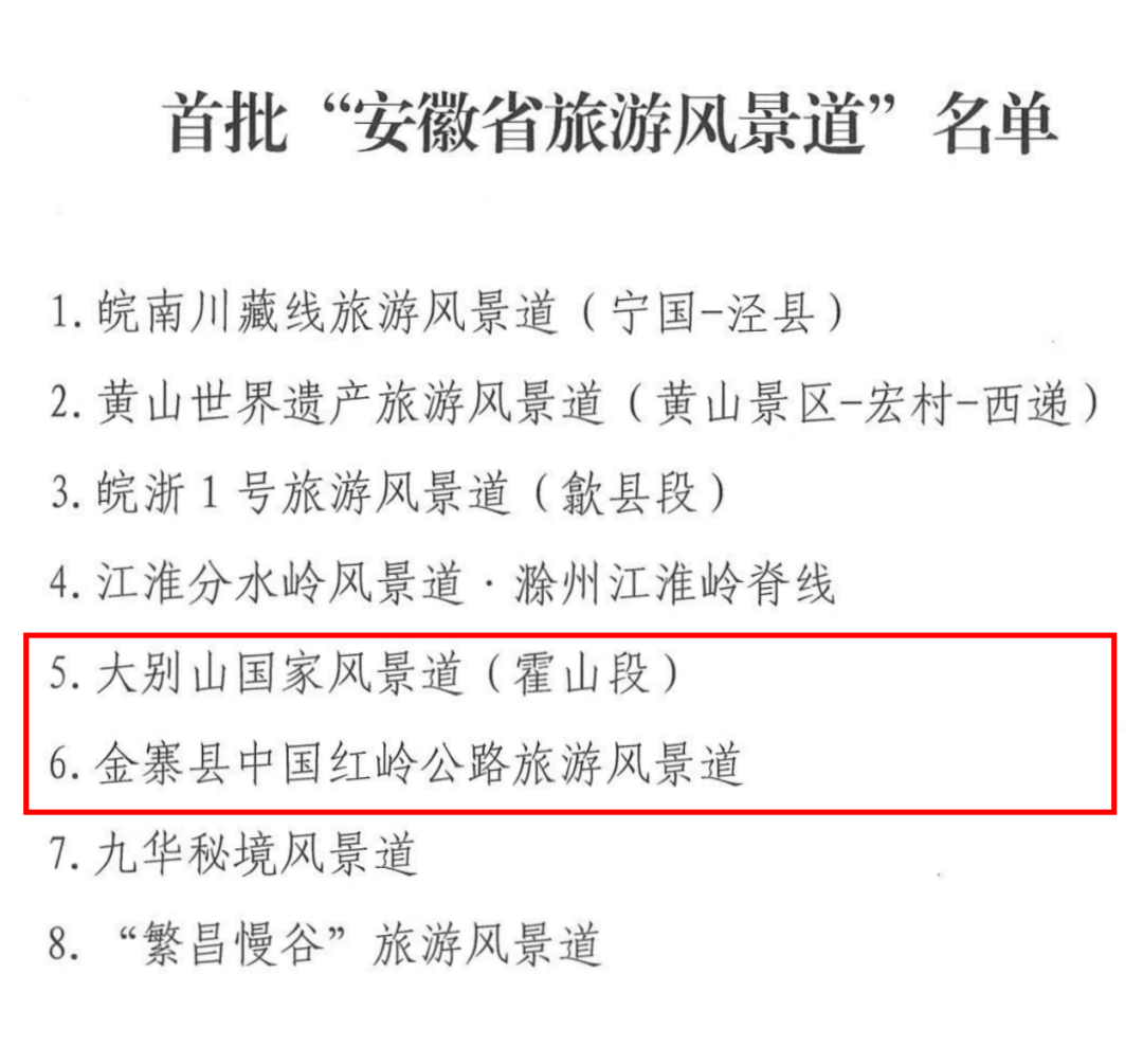 近日,安徽省文化和旅游廳、安徽省交通運(yùn)輸廳、安徽省林業(yè)局發(fā)布《關(guān)于認(rèn)定首批“安徽省旅游風(fēng)景道”的通知》,認(rèn)定“皖南川藏線旅游風(fēng)景道”等8條旅游風(fēng)景道為首批“安徽省旅游風(fēng)景道”,其中,我市大別山國家風(fēng)景道(霍山段)和金寨縣中國紅嶺公路旅游風(fēng)景道成功入選。