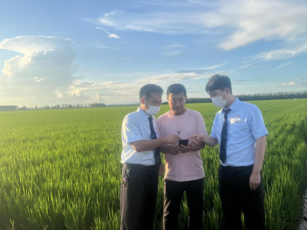 (建設(shè)銀行農(nóng)墾分行工作人員走訪水稻種植戶)