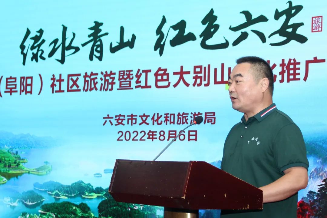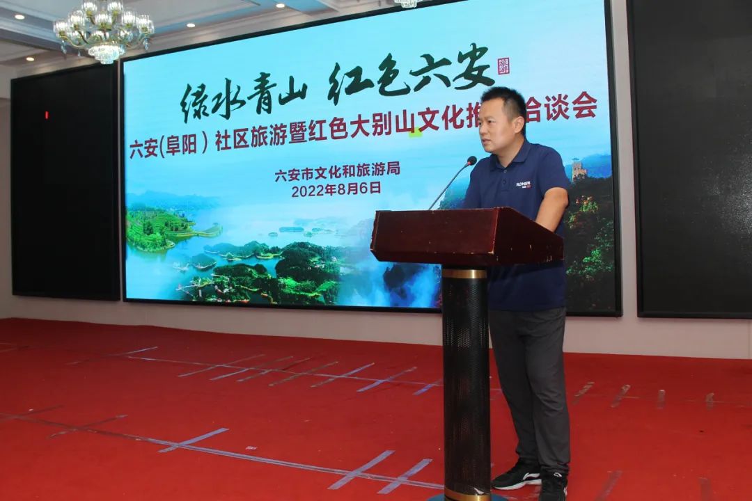 8月6日,由六安市文化和旅游局主辦的六安(阜陽)社區(qū)旅游暨紅色大別山文化推廣洽談會在阜陽市成功舉辦。六安市文旅局三級調(diào)研員王特、六安市部分文旅企業(yè)負責人參加了本次推介會,阜陽市旅游發(fā)展中心主任張玉清應邀出席了活動。