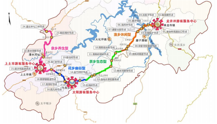 風景道沿線周邊配套建設了1個全域旅游集散中心,18個游客服務中心,81座A級旅游廁所,108塊旅游標識標牌,4個房車營地,改造升級500家民宿、農(nóng)家樂,推動全域旅游規(guī)范發(fā)展。