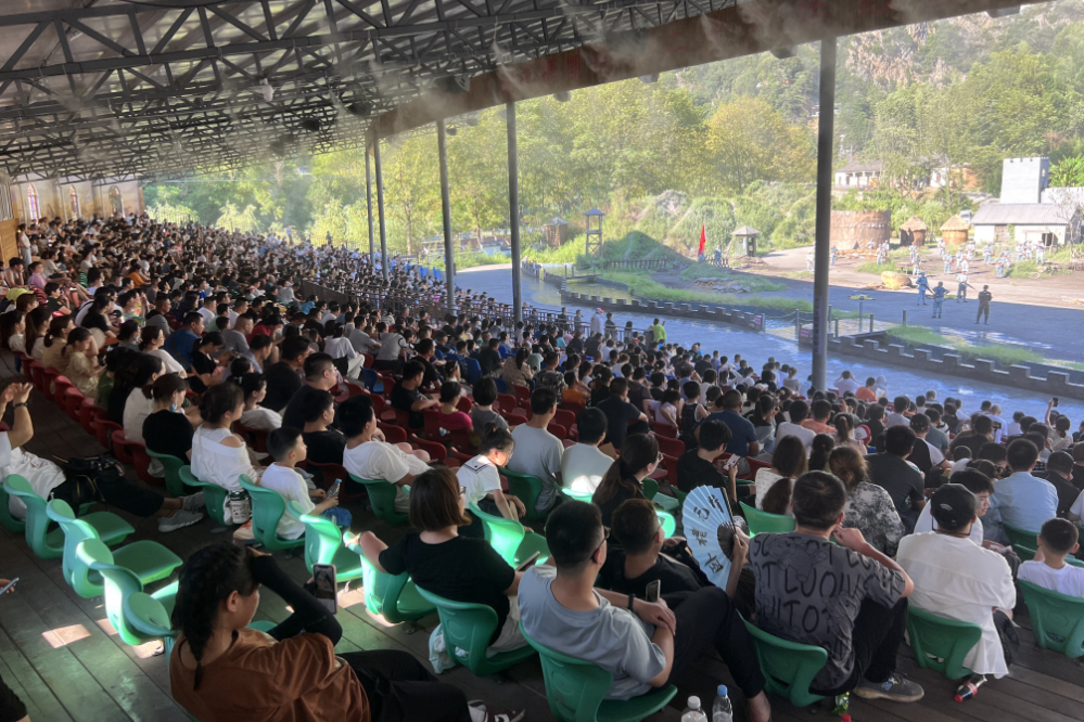 尤其是安徽首部大型實景抗戰(zhàn)演出《大別山傳奇》于7月3日震撼上演,該演出根據(jù)真實歷史事件改編,緊張激烈的戰(zhàn)斗情節(jié)、扣人心弦的戰(zhàn)爭場面讓觀眾在沉浸式體驗中心情跌宕起伏,成為來霍游客最心動的旅游節(jié)目。景區(qū)內(nèi)的夏日狂歡與《大別山傳奇》實景演出精彩碰撞,為城市周邊游點燃盛夏旅游耀眼的火花。