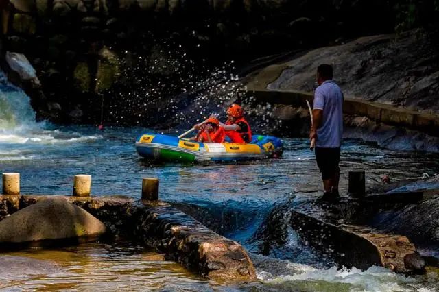 對于像我這樣怕熱的人來說,隨著皮筏一下扎進(jìn)去水里是漂流最好的降溫方式,在激流處皮筏隨著急流時(shí)上時(shí)下,無時(shí)無刻都在緊緊地抓住皮筏上的扶手,不過不必?fù)?dān)心安全問題,途中有很多安全員守護(hù)著,經(jīng)歷了一處急流,就有一處平緩的水面,讓你來調(diào)節(jié)緊張的心情,在這里可以毫無顧忌的打水仗,如果你的裝備不行,那么請你盡量選擇低調(diào),小心被別人潑的睜不開眼睛~