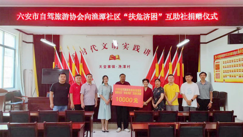 扶危濟困、守望互助是中華民族的傳統(tǒng)美德,崇德向善、助人為樂是全社會倡導的時代新風。8月18日,由六安市文化和旅游局三級調(diào)研員王特帶隊,六安市自駕旅游協(xié)會會長王燕、秘書長楊悅、副會長王洪濤一同代表協(xié)會向天堂寨鎮(zhèn)漁潭社區(qū)“扶危濟困”互助社開展愛心捐贈活動。