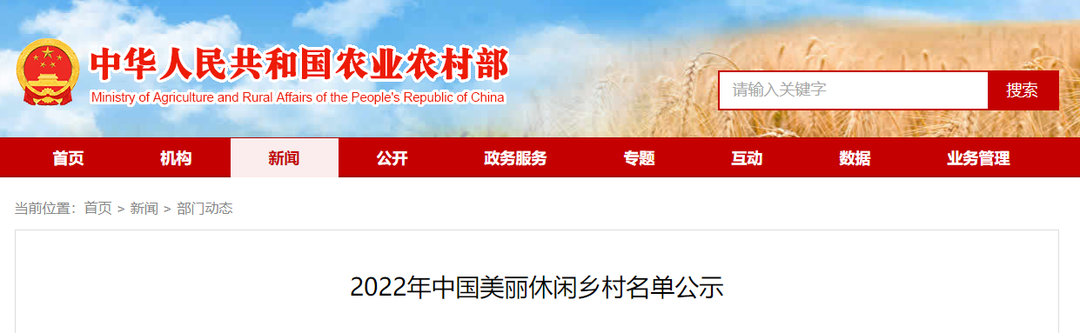 近日,中華人民共和國農(nóng)業(yè)農(nóng)村部網(wǎng)站公示2022年中國美麗休閑鄉(xiāng)村名單。