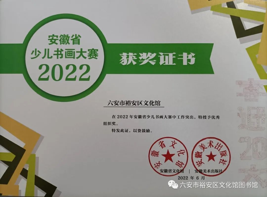 近日,由安徽省文化館、安徽美術(shù)出版社主辦的“2022年安徽省少兒書(shū)畫(huà)大賽”獲獎(jiǎng)名單正式公布,裕安區(qū)文化館選送作品在本次大賽中喜獲佳績(jī)。