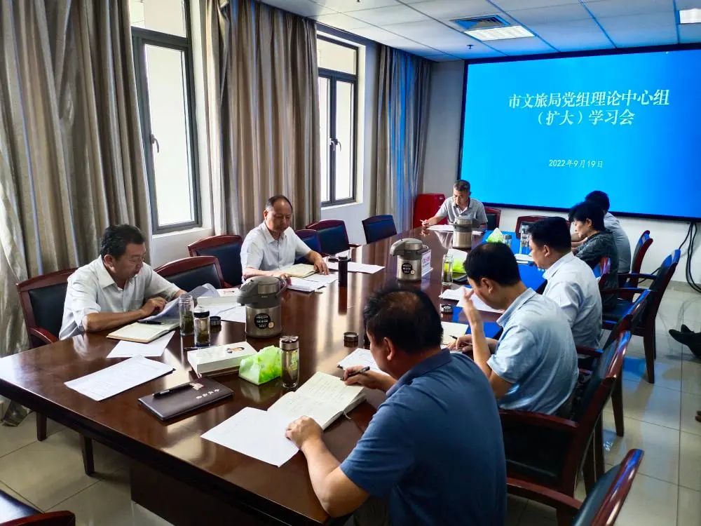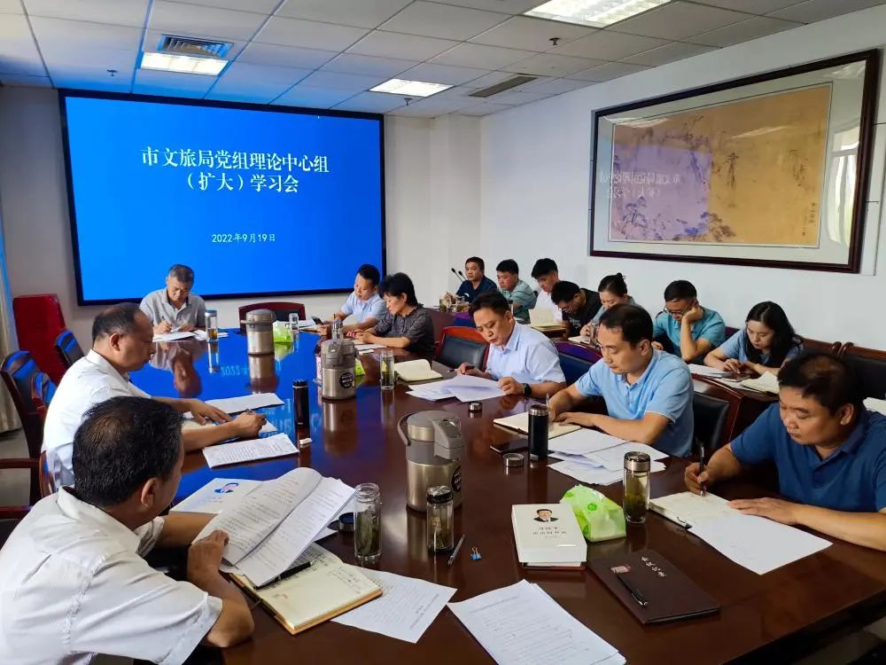 9月19日上午,市文旅局黨組召開理論學習中心組(擴大)學習會,局黨組書記時軍主持會議,局領導班子成員、機關各科室、直屬單位負責人參加會議。