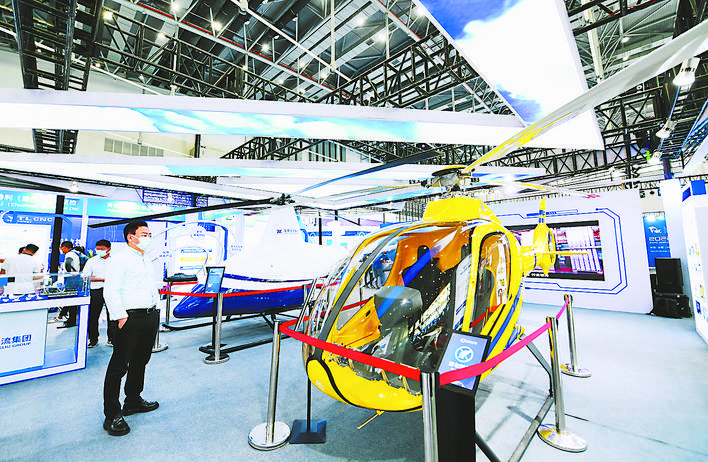 安徽應(yīng)流集團(tuán)展出的雙座直升機(jī)。記者 郭如琦 趙瑞瑞 攝
