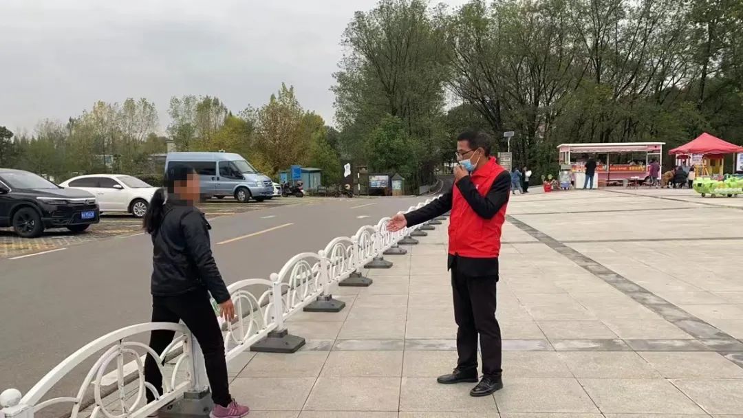 ▲志愿者引導(dǎo)游客有序離場(chǎng)
