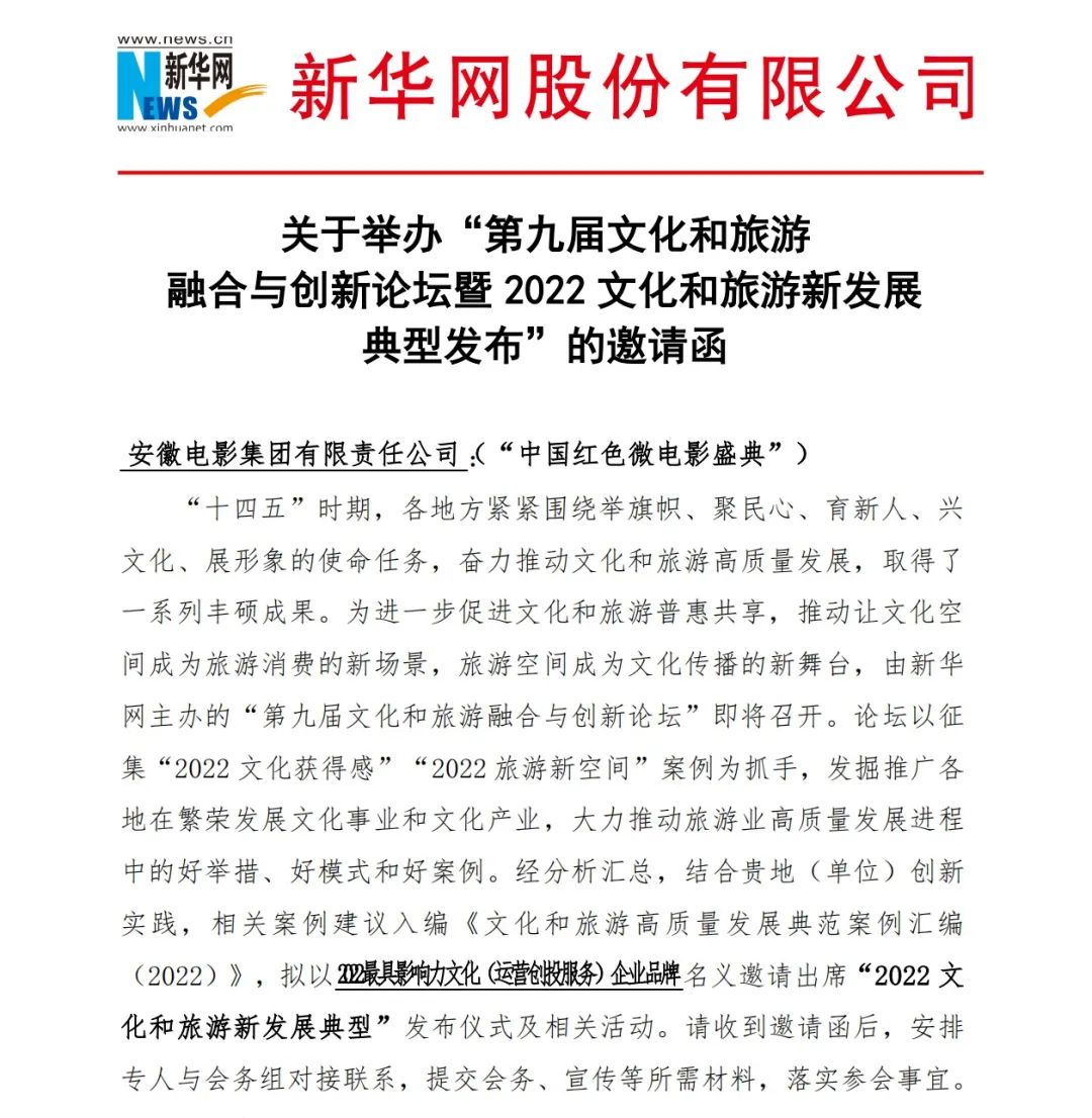 中國紅色微電影盛典活動作為全國性專業(yè)微電影活動,至今已成功舉辦五屆,成為安徽電影集團“做優(yōu)紅影品牌講好紅色故事”的典型案例。該活動近日成功入選第九屆文化和旅游融合與創(chuàng)新論壇暨2022文化和旅游新發(fā)展典型案例。