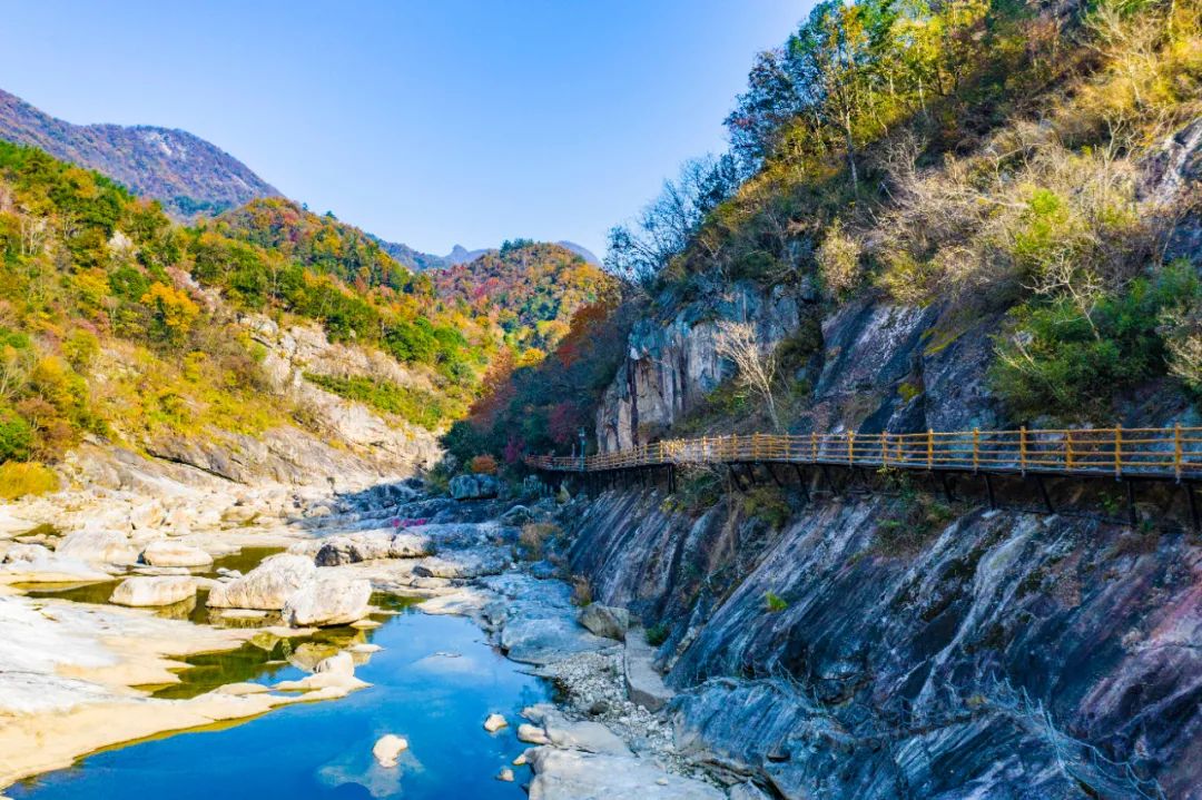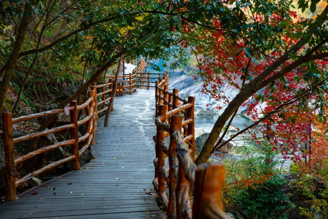 當山林編織成五彩斑斕的油畫時,和家人或朋友一起漫步在峽谷內(nèi),去肆意沉浸那迷人的山間秋色!