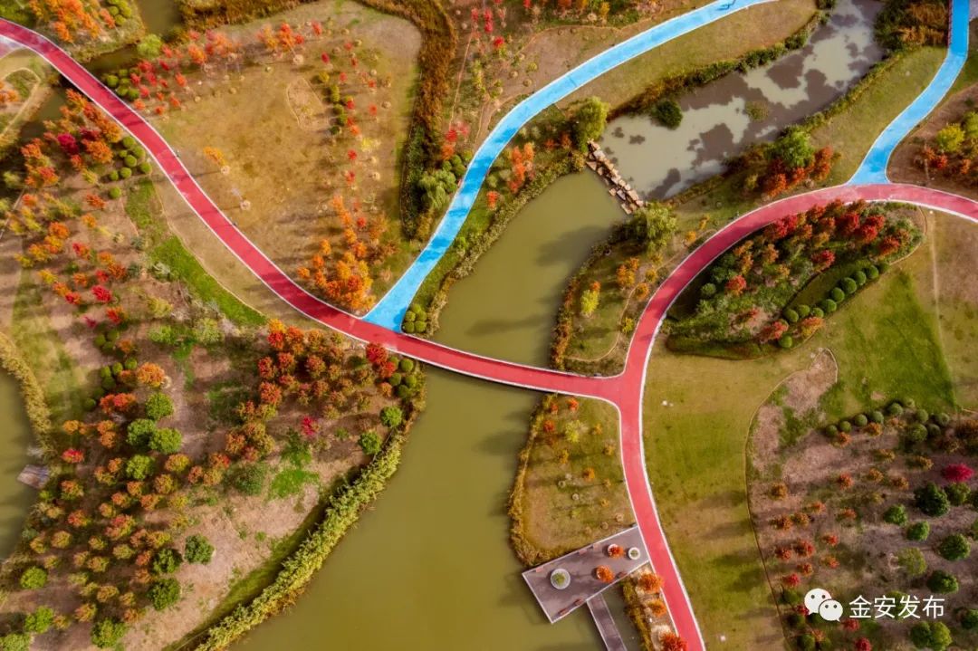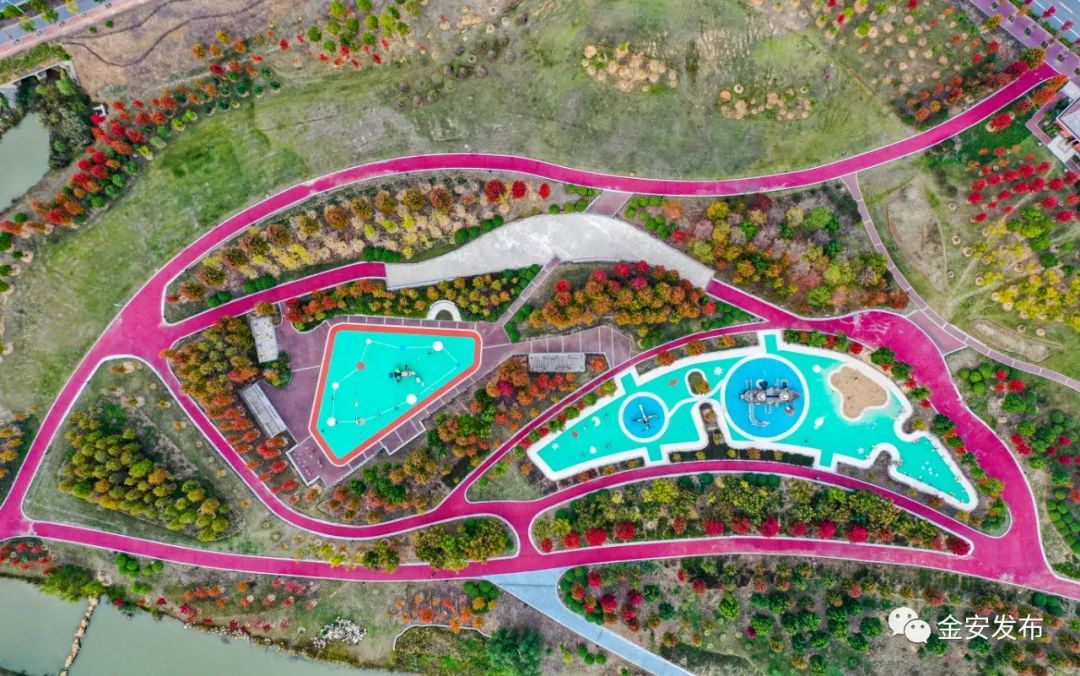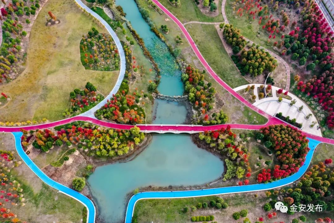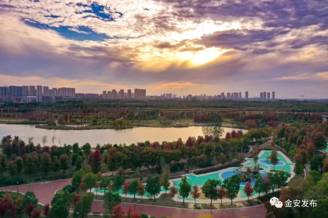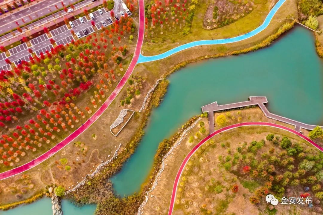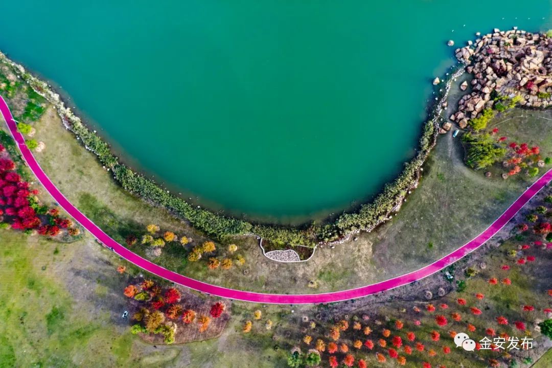 一望無邊的楓葉,如火如荼,濃濃秋意,入眼成畫,披上彩妝的樹木、健身步道、休閑亭臺與人工湖將金安未來城市公園點(diǎn)綴的格外美麗。