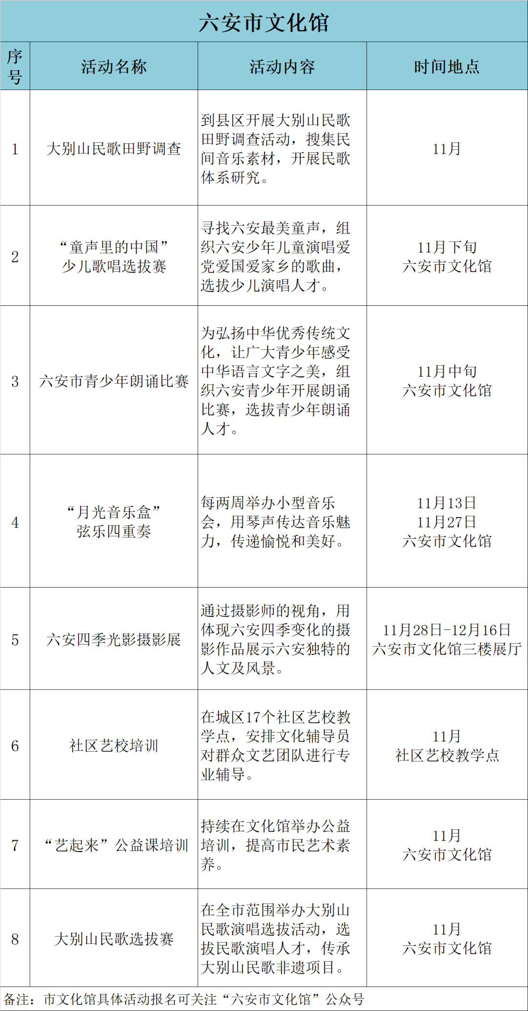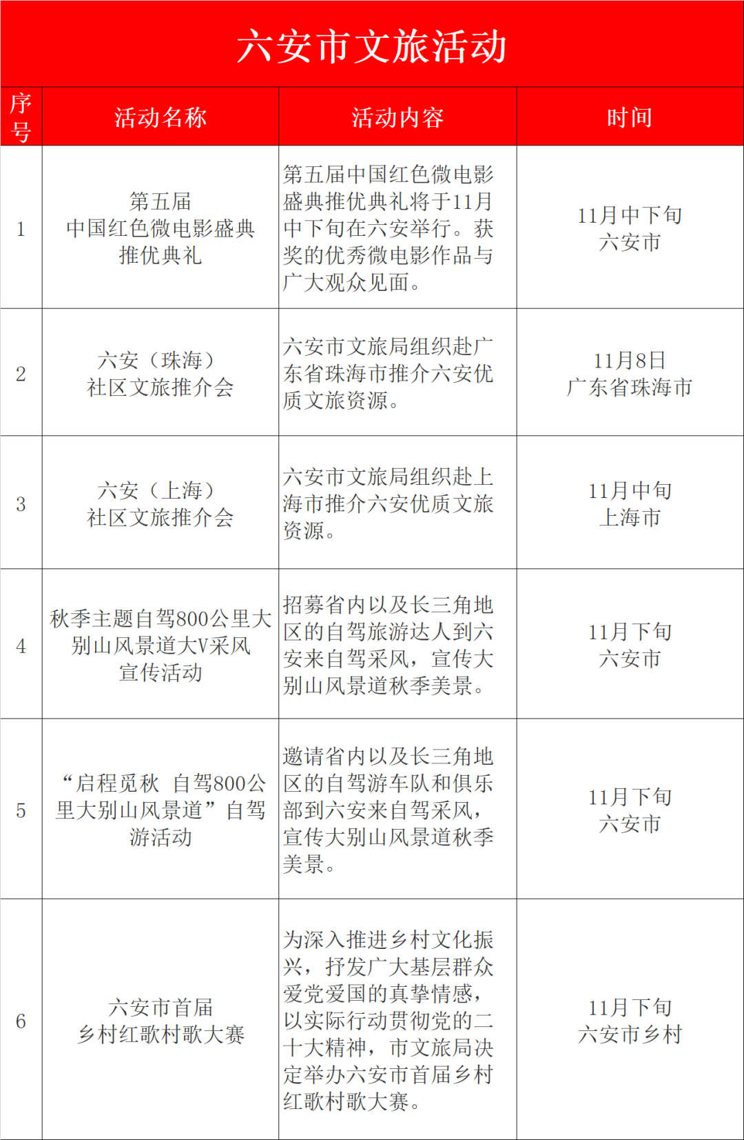 秋高氣爽的十一月,六安文旅活動精彩紛呈,等你來參加,千萬別錯過。