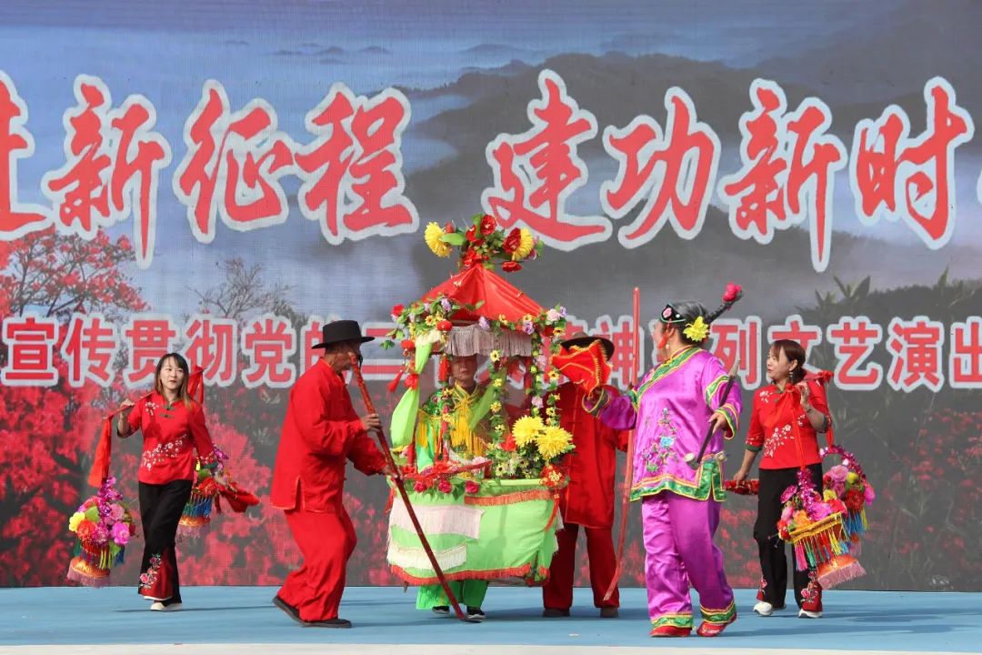“偉大的中國共產(chǎn)黨,風(fēng)華正茂,山高水長……”演出在歌伴舞《領(lǐng)航》中緩緩拉開序幕,翻飛的舞步、深情的旋律,唱出了對祖國的心聲和對黨的深情。隨后,器樂合奏、歌舞、戲曲、民俗表演等節(jié)目輪番上演,將現(xiàn)場氣氛不斷推向高潮?!皶h精神鼓舞人,舉國上下齊歡騰,回望黨的百年路,聽我一一來回顧......”精心編排的音樂快板《禮贊黨的二十大》,通過朗朗上口的快板詞,將理論宣講融入唱演,也讓黨的二十大精神“聲”入心人。