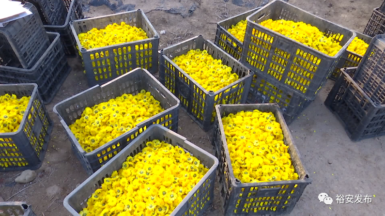 此時(shí),與之相連的林灣村村部東北方30畝沙灘地上,金絲黃菊、大黃菊爭(zhēng)相斗艷,煞是惹人喜愛。為了珍惜眼下這來之不易的收獲,村民們?cè)谛蕾p著菊花的同時(shí),盡力做到輕采慢摘?!霸绨胩煊新端贿m宜采摘,我們村民們都是在12點(diǎn)左右,吃完午飯立馬就進(jìn)入采摘狀態(tài)。這兩天我們每天采摘量在500斤左右。”正在采摘地村民說。