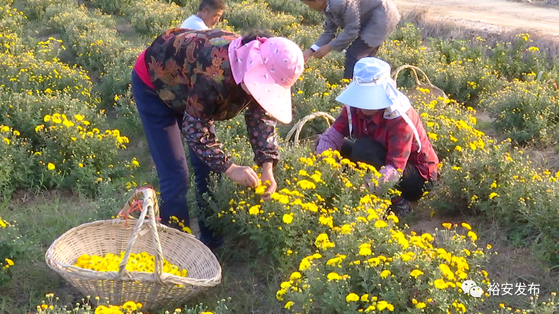 在陶沖村老淠河河畔,80多畝的小黃菊開正盛,一眼望去,眼眸里滿是金黃。走進(jìn)菊花地,近20位村公益性崗位人員正忙活著采摘菊花。不一會(huì),整筐的小黃菊被搬上了三輪車,運(yùn)送到鄉(xiāng)里的烘干車間進(jìn)行加工制作?!敖衲觊L(zhǎng)勢(shì)挺好,收入大約35萬左右,一畝我們可以收入4000多?!碧諞_村村書記吳緒芳說。