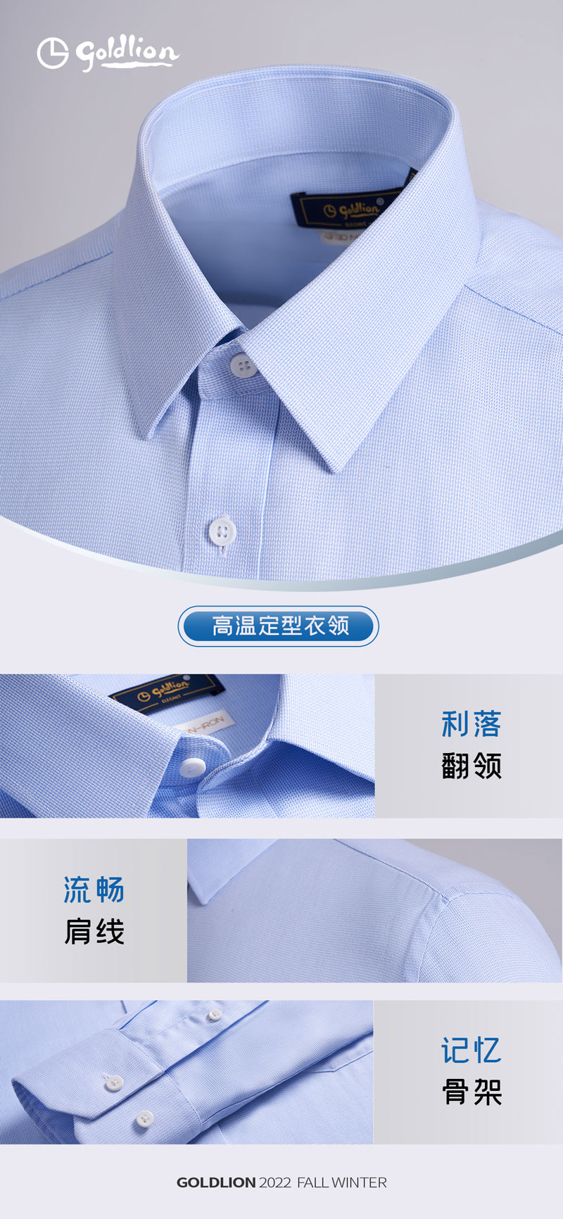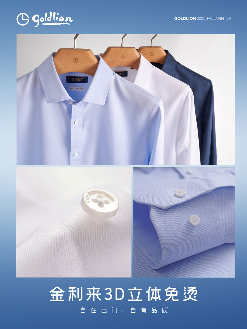 職場男士時間、精力是最寶貴的,選擇襯衫“免燙”是不得不重視的,以創(chuàng)新科技為載體,金利來3D立體免燙襯衫解決了傳統(tǒng)襯衫的主要痛點,免燙易打理,真正做到匠心制造。每一件襯衫都經(jīng)過了128道工序精心制作,采用國家標準3.5-4級免燙技術,從領口延伸至袖口7個部位立體壓燙,所有骨位加固嵌條有效保持多次洗滌后成衣依舊平整如新,出門隨拿隨穿,上身一天都不會有褶皺;采用100支長絨棉高紗支防皺面料,雙倍質(zhì)感、雙倍細膩,其柔軟度,光澤度,親膚度,透氣性,彈性等均遠超普通棉,為肌膚帶來柔軟服帖的舒適體驗,沉著干練中透出一絲精致。