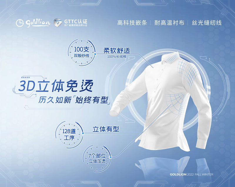 金利來3D立體免燙襯衫,解決了男人們最為頭疼和糟心的襯衫難打理難題。3D免燙技術,讓襯衫時刻百“折”如新,無需費力打理就可全天保持紳士風度,讓男士們省時又省心,自信馳騁職場。