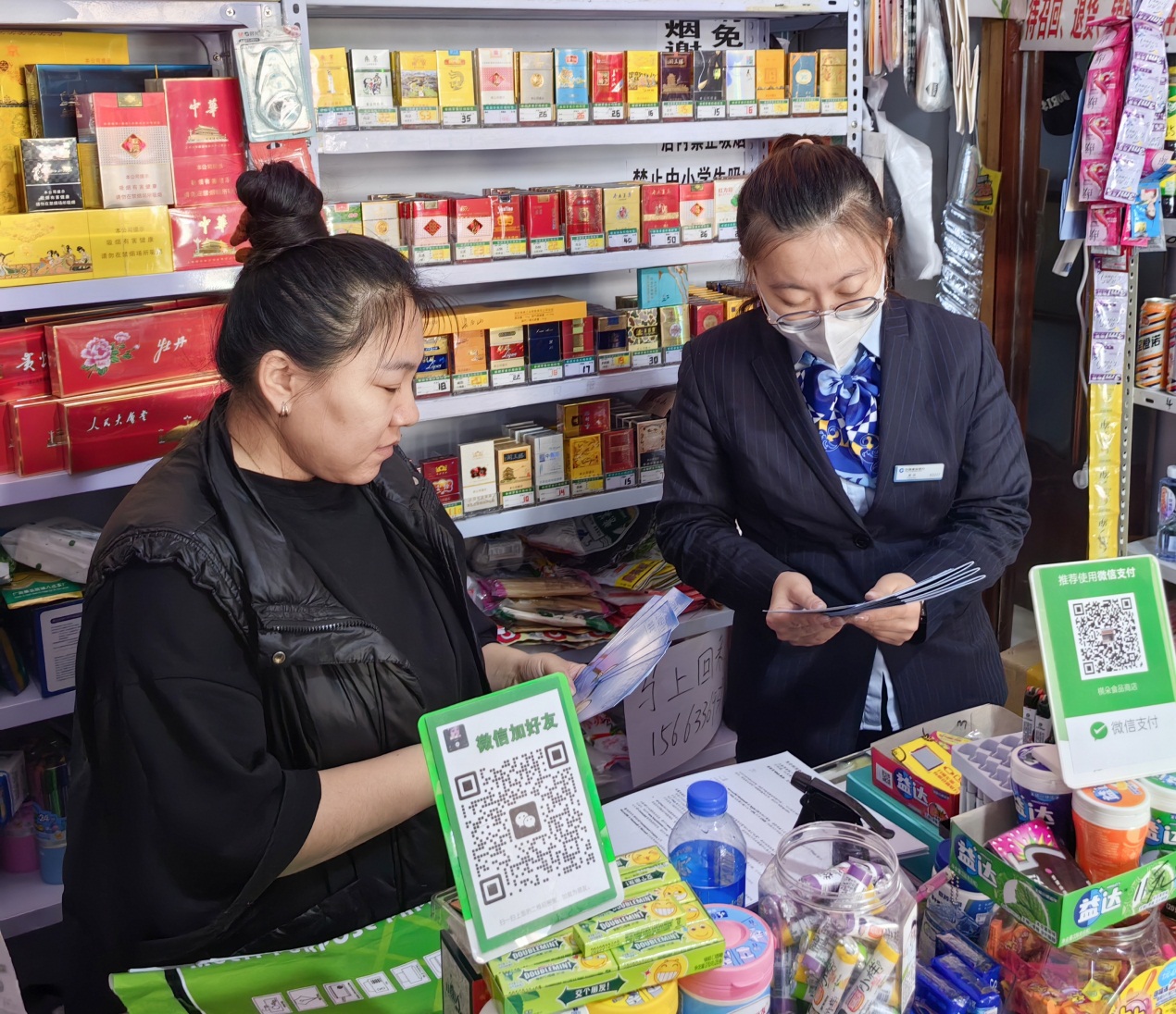 14:17,齊齊哈爾市富裕縣棋朵食品商店。建設(shè)銀行富裕奮斗支行客戶經(jīng)理黃榮在走訪中發(fā)現(xiàn),商店客流量較大,但收付款方式無法滿足日常需求,“咱們‘龍商戶’收款方便、費(fèi)率優(yōu)惠,還可以申請(qǐng)商戶貸款,我們現(xiàn)在就可以給您安裝?!薄鞍逊?wù)送上門,這效率也太高了,真心為你點(diǎn)贊!”棋朵食品商店負(fù)責(zé)人王莉向黃榮豎起了大拇指。