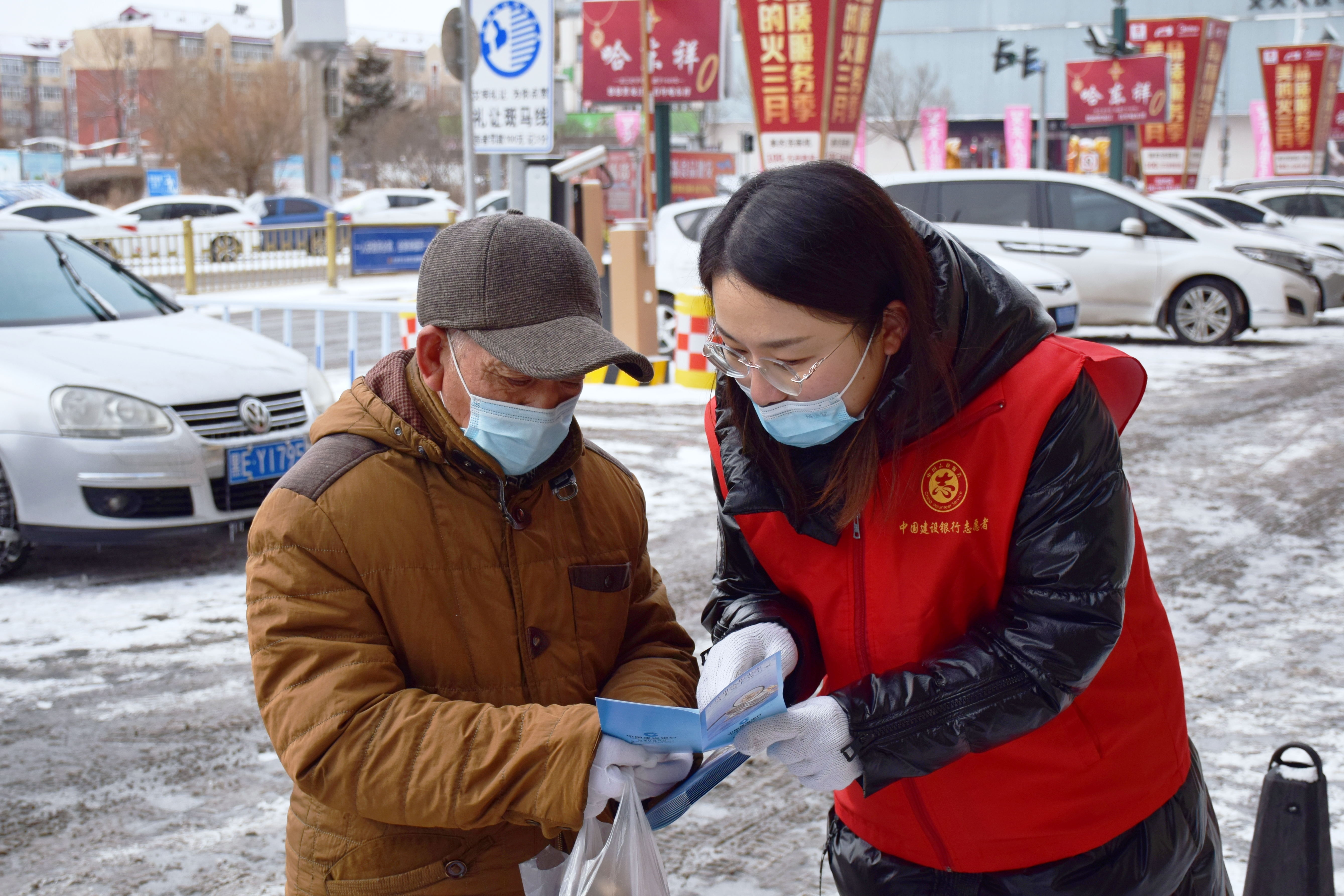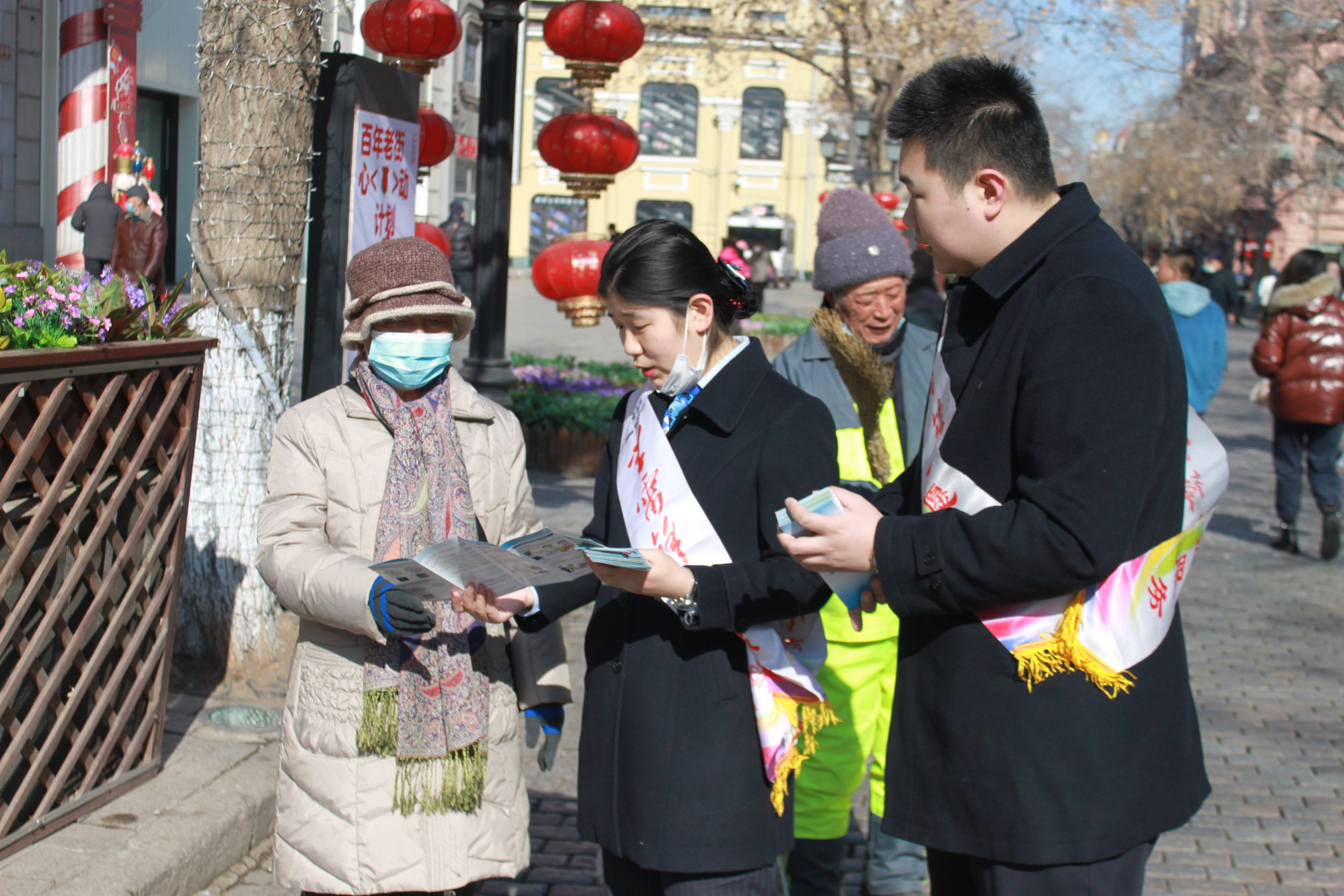 建設(shè)銀行哈爾濱新陽支行工作人員在中央大街開展消保宣傳