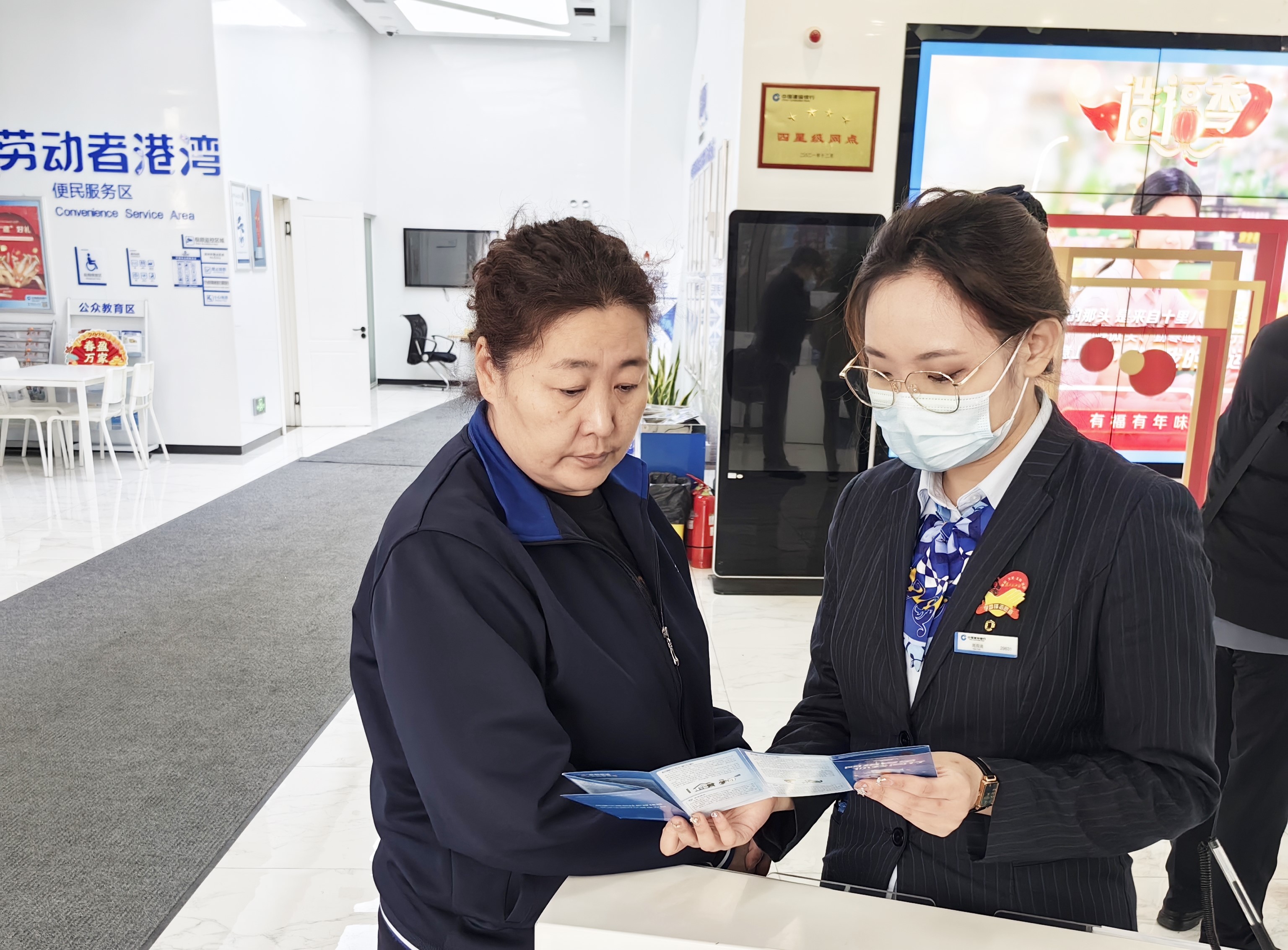 建設(shè)銀行哈爾濱自貿(mào)區(qū)支行工作人員向到店客戶普及金融消保知識