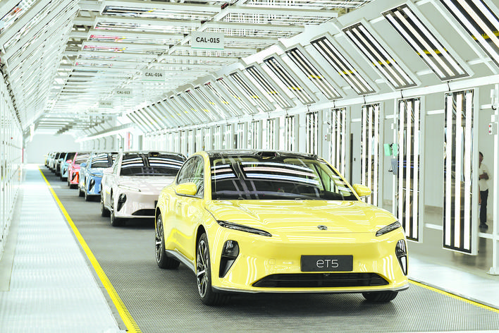 合肥新橋智能電動(dòng)汽車產(chǎn)業(yè)園蔚來(lái)eT5車型下線。記者 張大崗 攝