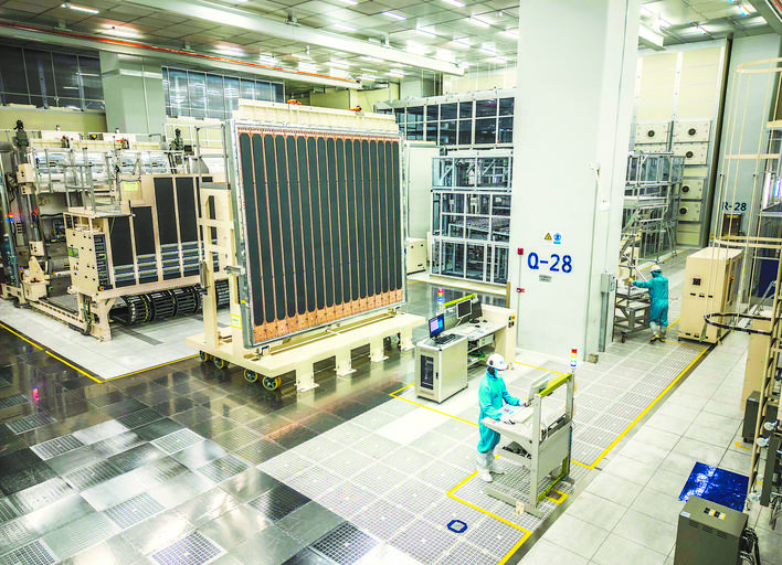 全球首條最高世代線——10.5代生產(chǎn)線有序運(yùn)轉(zhuǎn)。解琛 攝