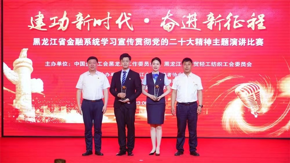 建設(shè)銀行黑龍江省分行劉勇言/左三在黑龍江省金融系統(tǒng)學習宣傳貫徹黨的二十大精神主題演講比賽中獲得一等獎