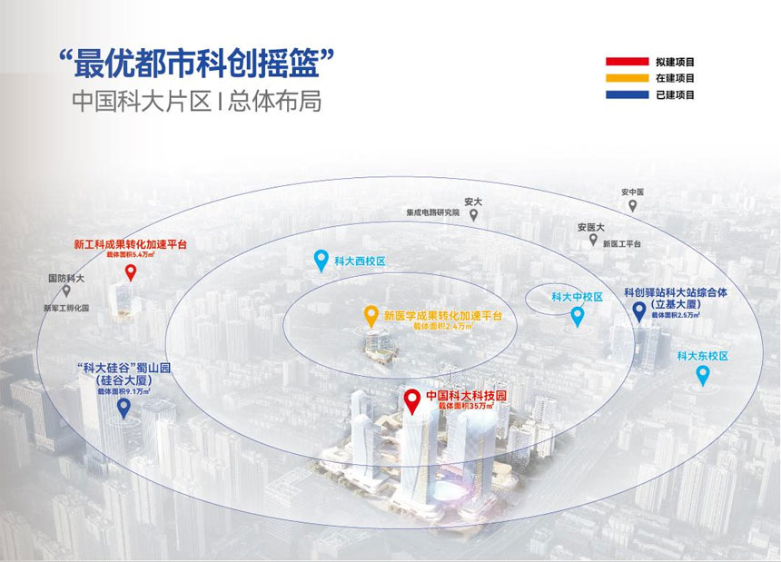 “科大硅谷”蜀山園是科大硅谷“一核兩園一鎮(zhèn)”功能承載區(qū)中的重要一環(huán)。蜀山區(qū)運(yùn)用市場(chǎng)化方式,盤(pán)活存量空間,建設(shè)增量空間,打造中國(guó)科大科技園、博士創(chuàng)新創(chuàng)業(yè)園、新醫(yī)學(xué)和新工科成果轉(zhuǎn)化平臺(tái)、科創(chuàng)市場(chǎng)服務(wù)中心等,構(gòu)建孵化功能區(qū)和國(guó)際合作區(qū)。同時(shí),實(shí)施中國(guó)科大和科學(xué)島路周邊環(huán)境提升工程,推動(dòng)中國(guó)科大東、中、西校區(qū)一體化通道建設(shè)。
