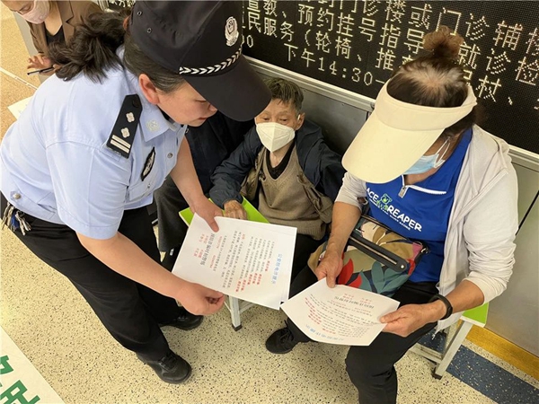 昆明醫(yī)科大學第一附屬醫(yī)院位于耿紅玲管區(qū)內(nèi),年接診量達百萬起,日均人流量超2萬次,醫(yī)院的安全穩(wěn)定直接決定轄區(qū)的安全穩(wěn)定。大觀所在昆明醫(yī)科大學第一附屬醫(yī)院建立了警務室,用于接待群眾、調(diào)解糾紛,耿紅玲每天都會去到警務室,查看警務室輔警的值守情況,接待群眾的情況,參與調(diào)解糾紛,并對醫(yī)院保安員的值守進行督檢,定期對醫(yī)院保安員開展應急處置、消防安全等培訓,確保了醫(yī)院的安全和穩(wěn)定。