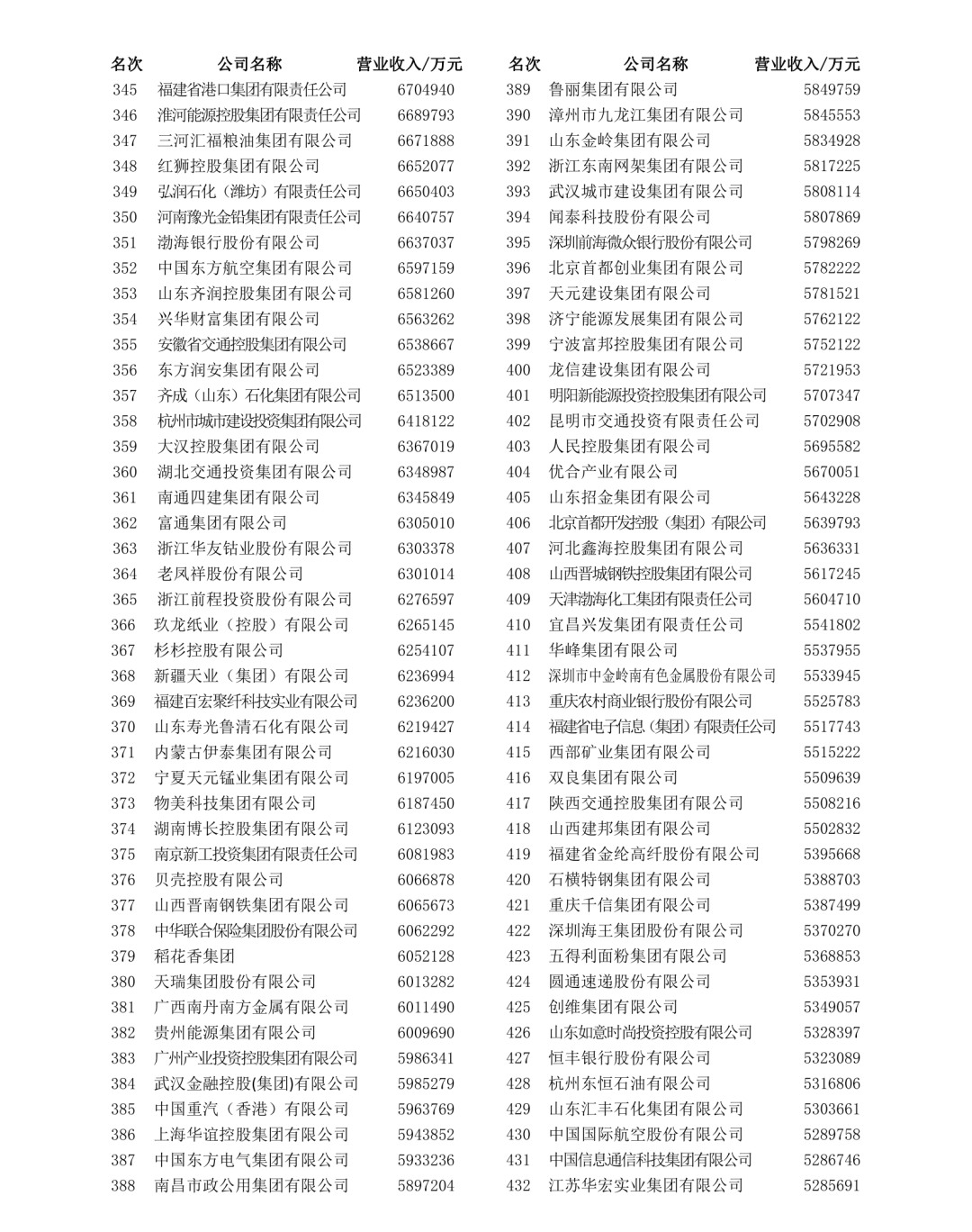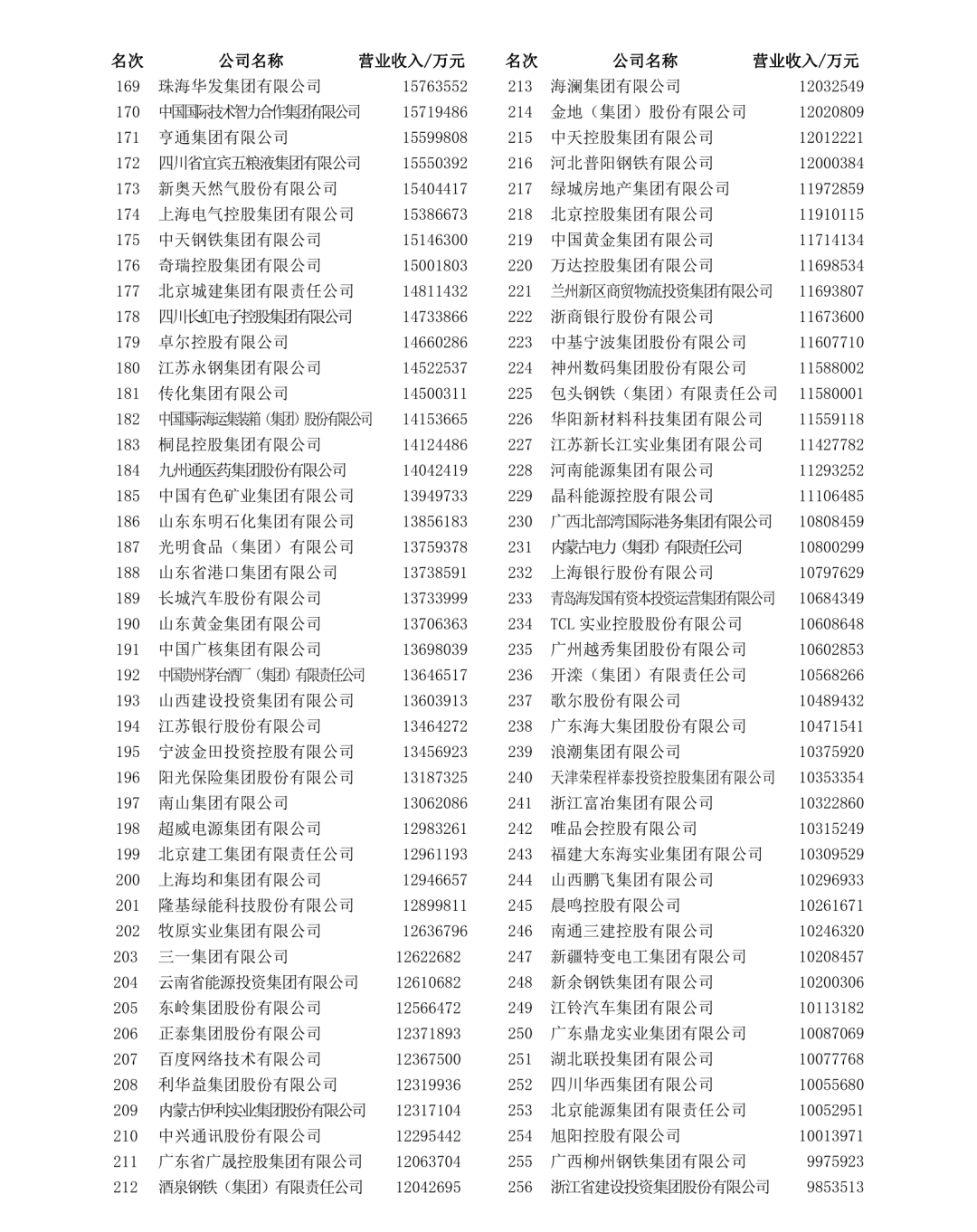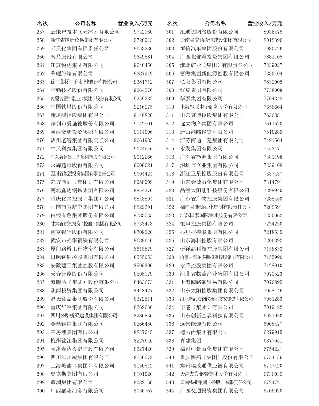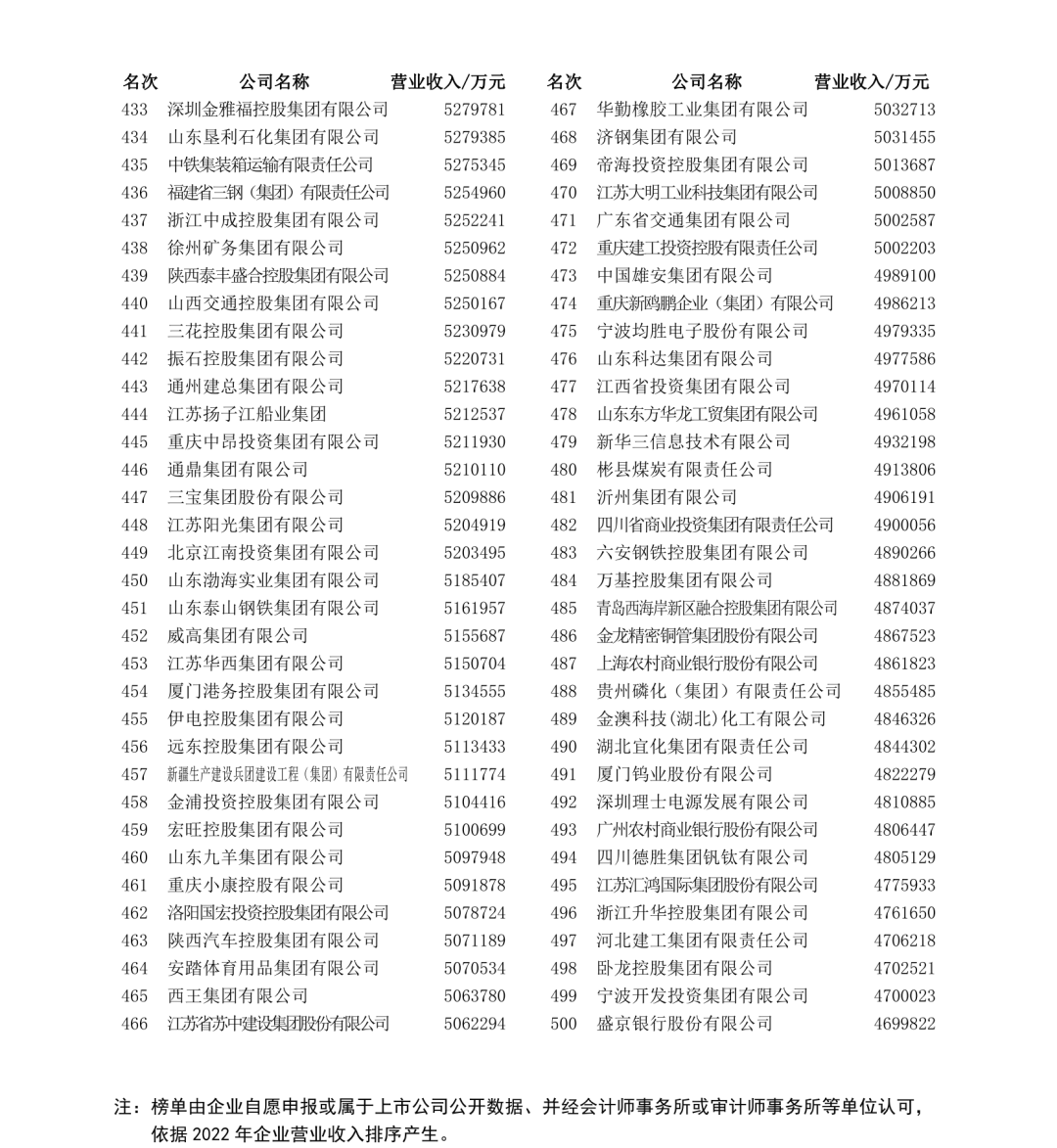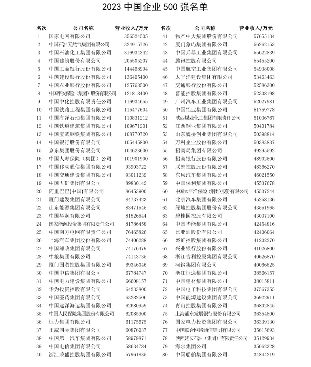 附2023中國(guó)企業(yè)500強(qiáng)名單