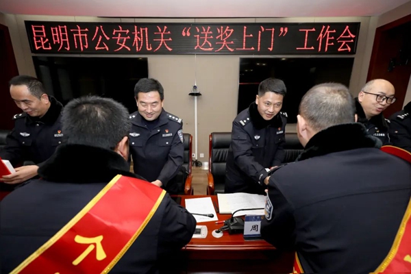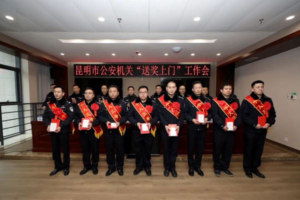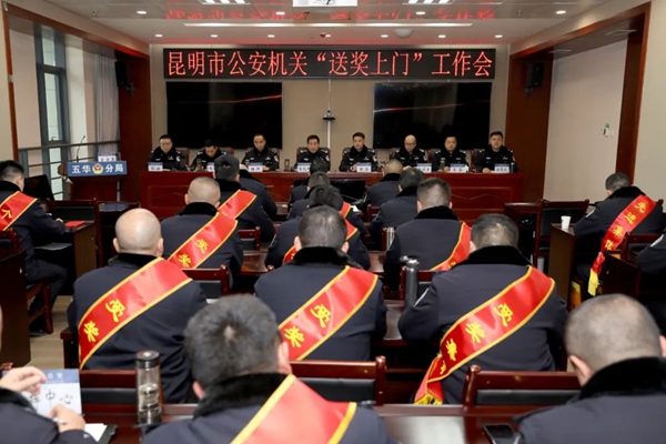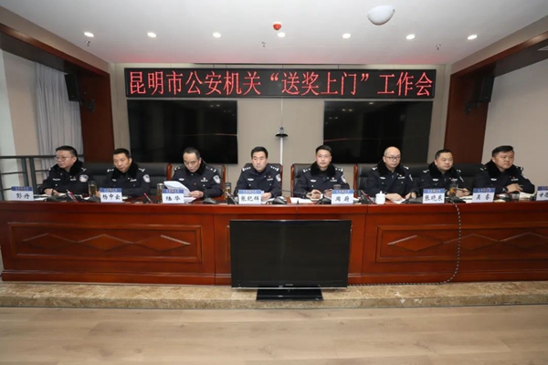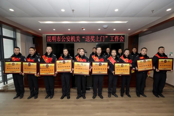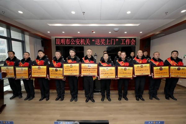 12月25日下午,為貫徹落實(shí)昆明市公安局黨委愛(ài)警暖警護(hù)警措施,弘揚(yáng)正氣,表彰先進(jìn),鼓舞士氣,昆明市公安局黨委專職副書記張紀(jì)輝帶領(lǐng)市局機(jī)關(guān)黨委副書記、政治部副主任陸華,政治部獎(jiǎng)勵(lì)優(yōu)撫處一行,到昆明市公安局五華分局召開“送獎(jiǎng)上門”工作會(huì),對(duì)五華分局受到市公安局記功嘉獎(jiǎng)表彰的集體、個(gè)人代表進(jìn)行現(xiàn)場(chǎng)表彰送獎(jiǎng)。