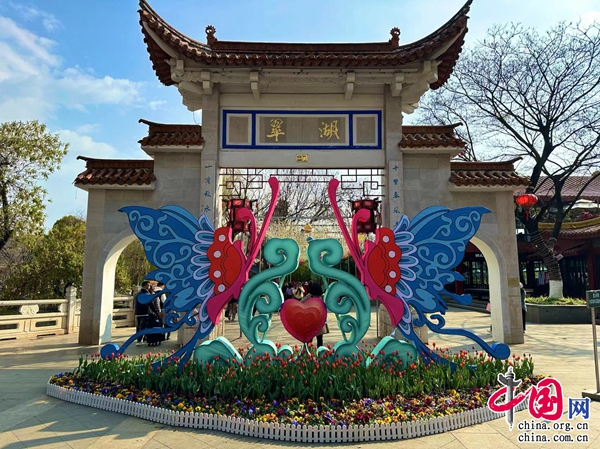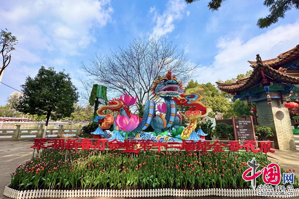 2024年春節(jié),步入翠湖公園,數(shù)以萬計的鮮花匯聚成花海、靈動璀璨的燈光造型營造出歡樂喜慶的氛圍,豐富多彩的節(jié)目迎接著您的到來。游客朋友們可打卡拍照,共同記錄下熱烈蓬勃的翠湖春日浪漫。(楊雯)
