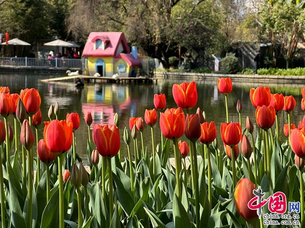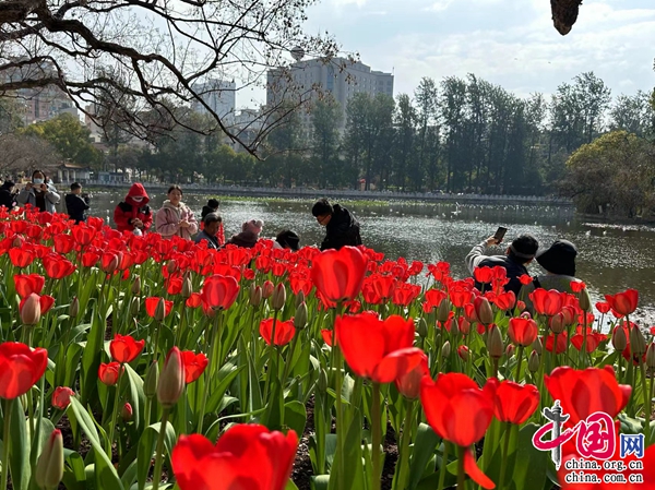 郁金香是春日的花信,也是盛世繁華的象征,受到大家的喜愛。每年春節(jié)期間,位于昆明市五華區(qū)的翠湖公園都會舉辦郁金香花展,色彩繽紛的郁金香在陽光下匯聚成花海,藍(lán)天、碧水、紅嘴鷗為背景的映襯下,“翠湖”這塊綠寶石散發(fā)著別具一格的魅力。