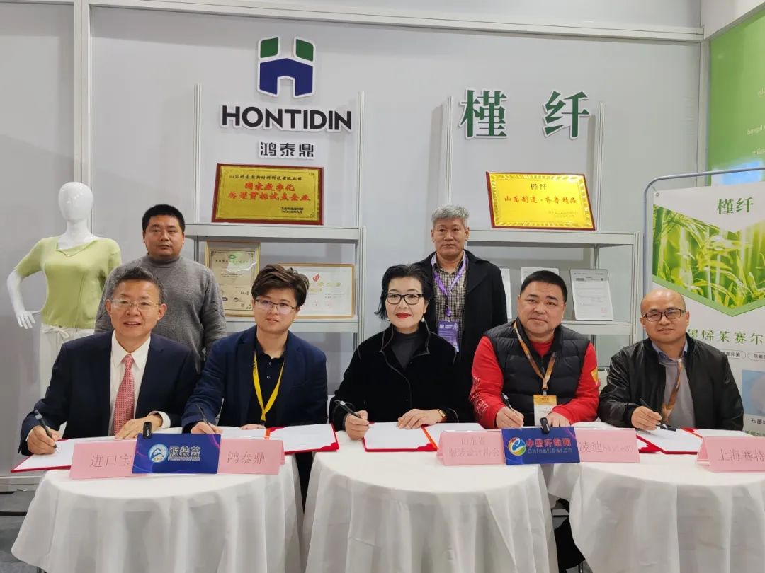 2024年3月8日于中國國際服裝服飾博覽會舉行期間在上海國家會展中心,由山東省服裝設(shè)計協(xié)會、山東省紡織纖維產(chǎn)業(yè)鏈聯(lián)盟發(fā)起的舉行竹纖維萊賽爾可降解的馬面裙產(chǎn)業(yè)鏈項目全球市場開發(fā)簽約儀式。
