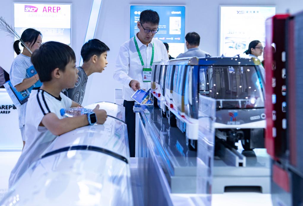9月21日,小朋友在2024世界制造業(yè)大會上參觀一款自動旅客捷運系統(tǒng)模型。新華社記者 傅天 攝
